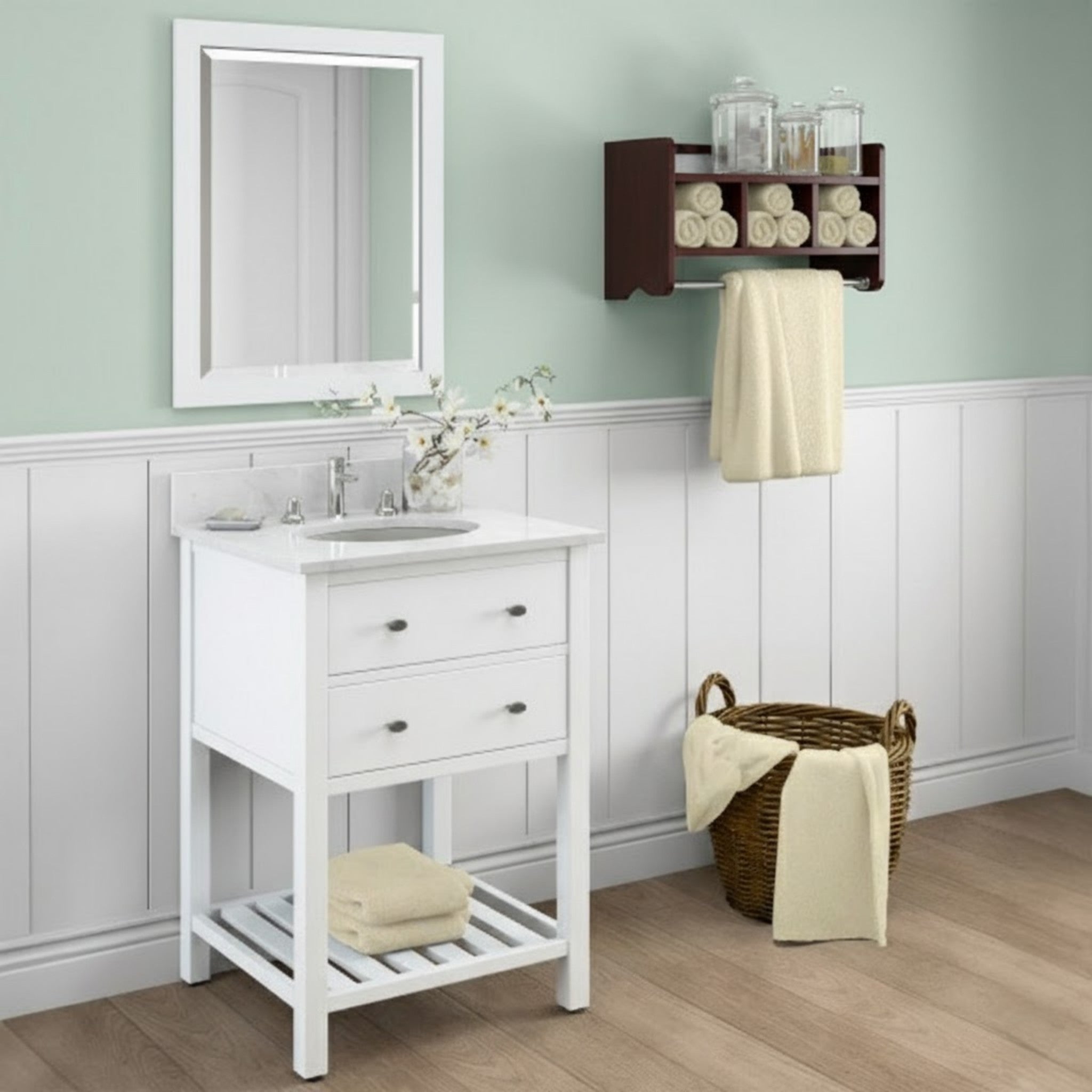 - [EASY INSTALLATION] Hanging hardware included; no assembly required; Just hang in place & enjoy a simple, instant bathroom makeover