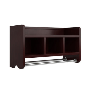 - [MAXIMIZE BATHROOM SPACE] The Logan Espresso Bath Storage Shelf with cubbies and towel rods elevates bathroom organization, providing ample storage and easy access to essentials