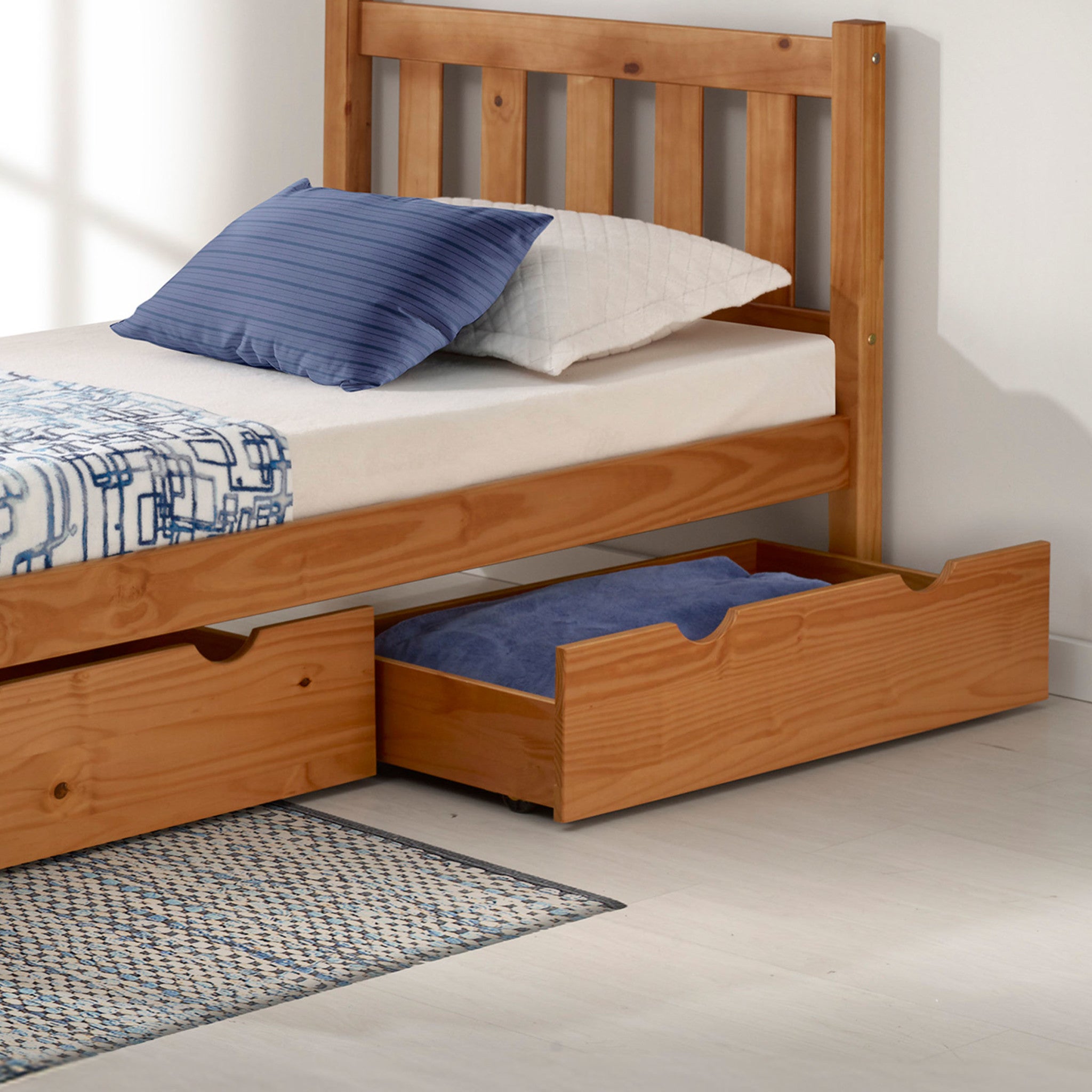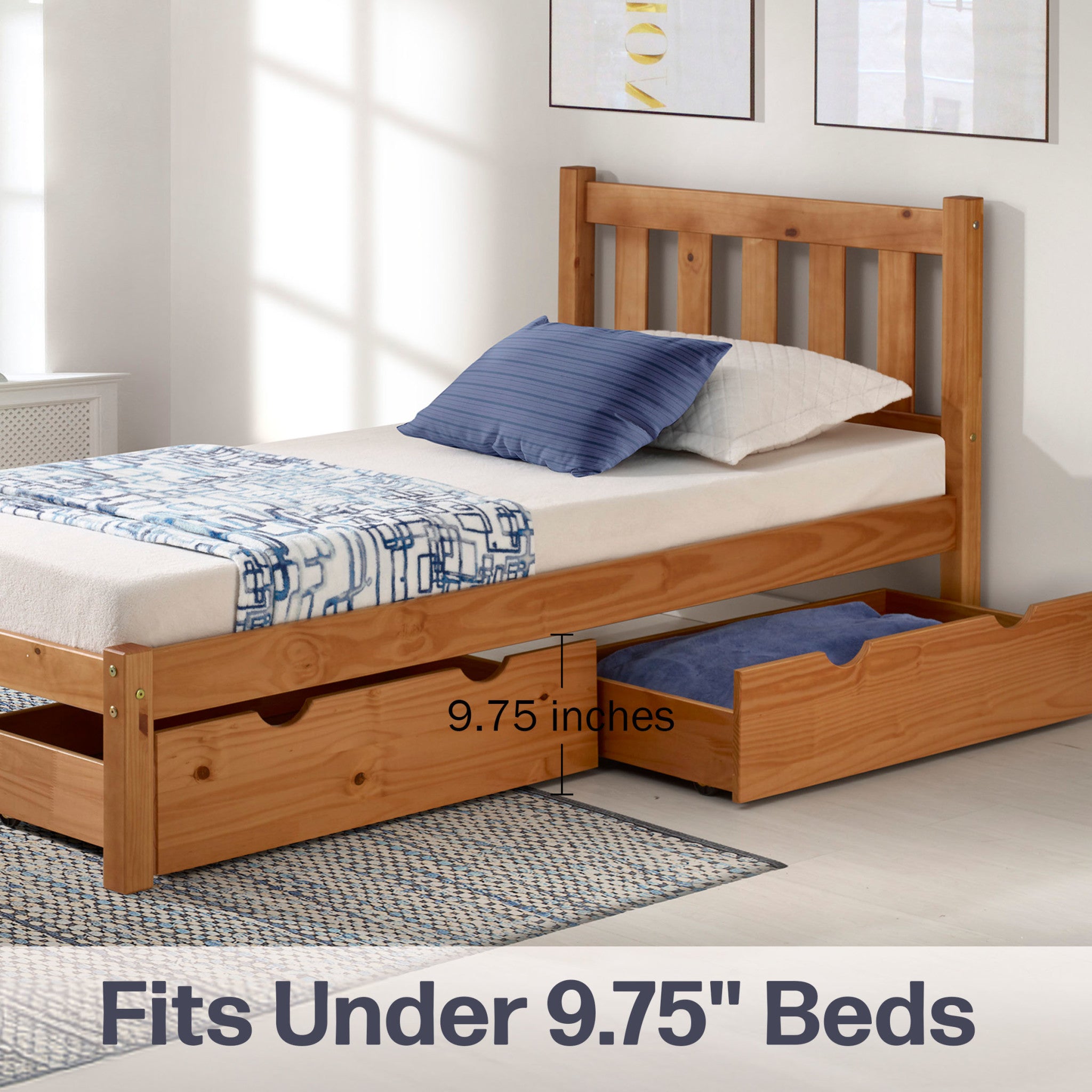 - [OPTIMIZED FOR KIDS' BEDROOMS] Designed to fit under beds 9.75" or higher, these Alaterre Furniture Underbed Storage Drawers in cinnamon finish are perfect for storing toys and clothes, measuring 35 x 19.25 inches inside for easy access