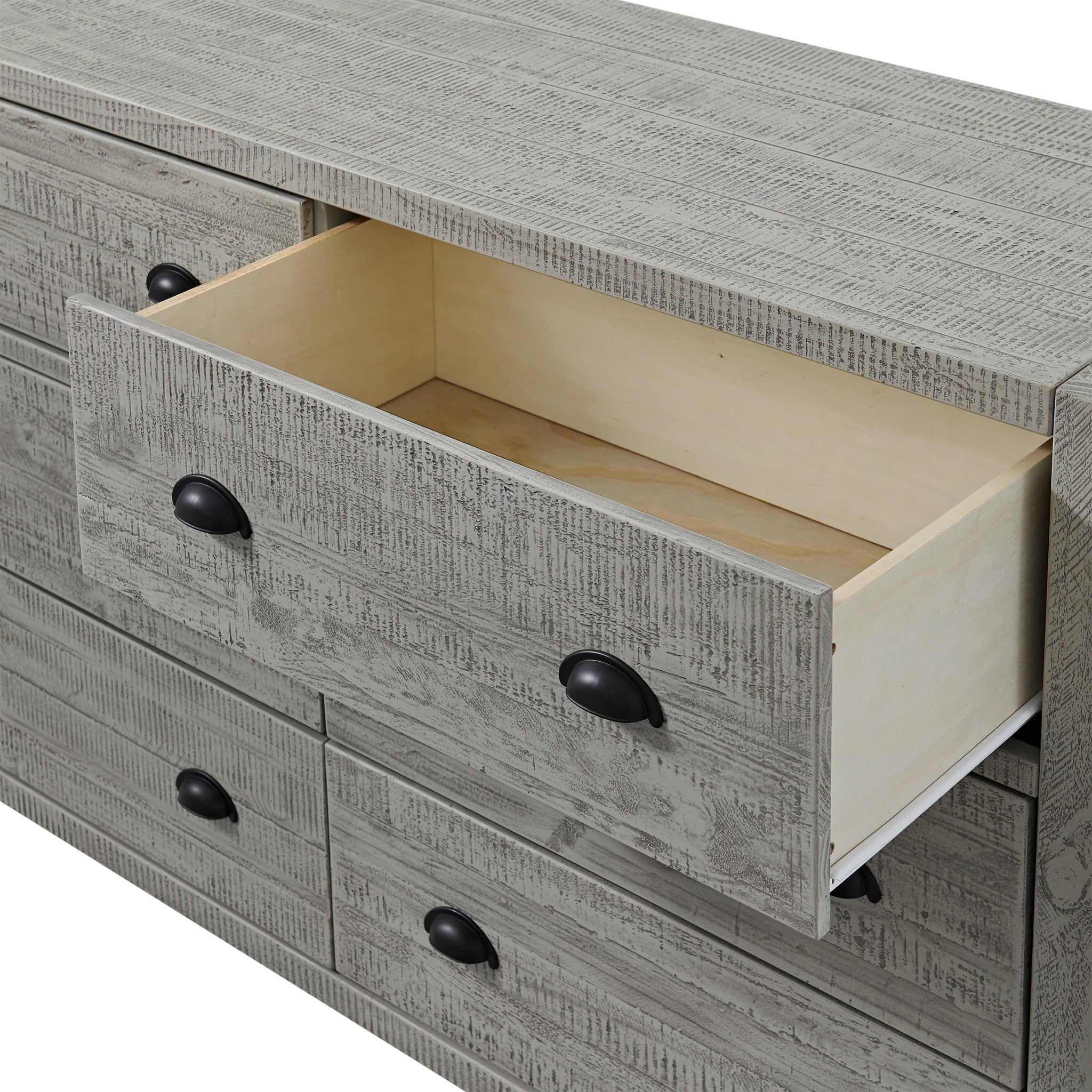 - This natural pine wood chest of drawers is crafted with a driftwood finish that highlights the variations that make each piece unique