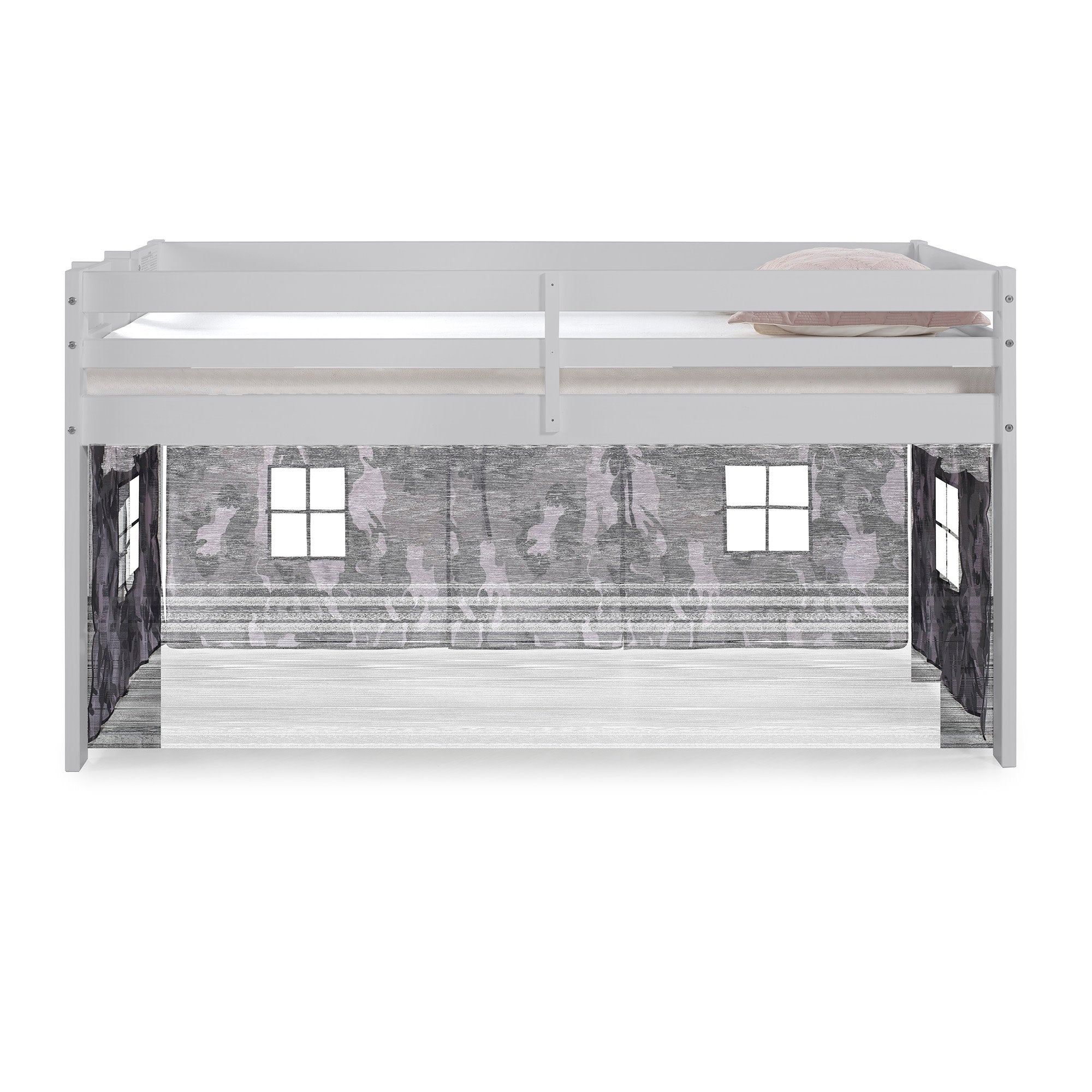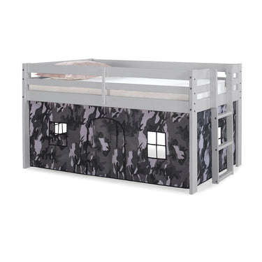 Jasper Twin Junior Loft Bed, Dove Gray Frame and Gray Camouflage Bottom Playhouse Tent