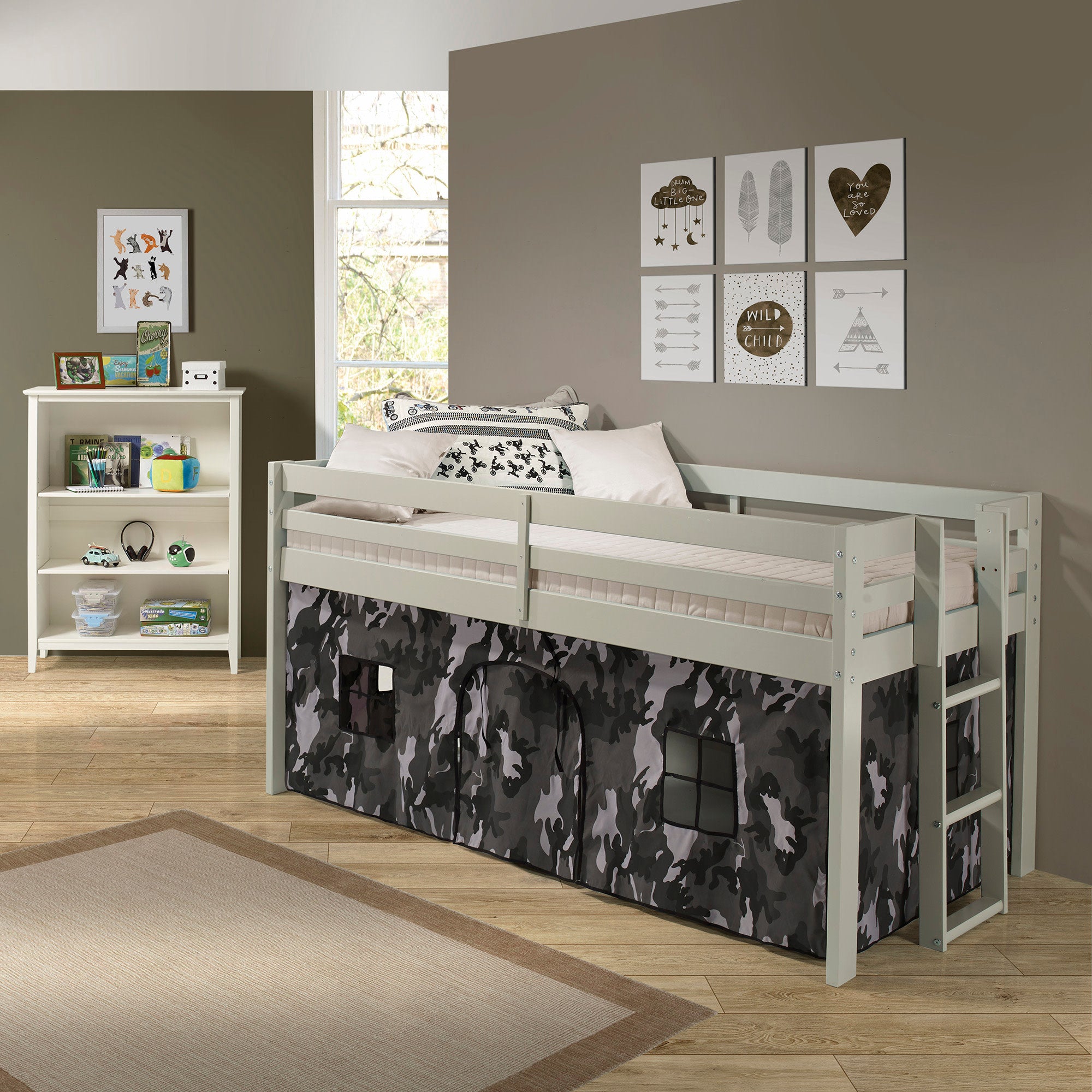 • [IMAGINATIVE PLAY SPACE] The Jasper Twin Junior Loft Bed features a gray camouflage bottom playhouse tent, transforming any child's bedroom into an adventurous play area; encourages creativity and play while providing a cozy spot for sleep