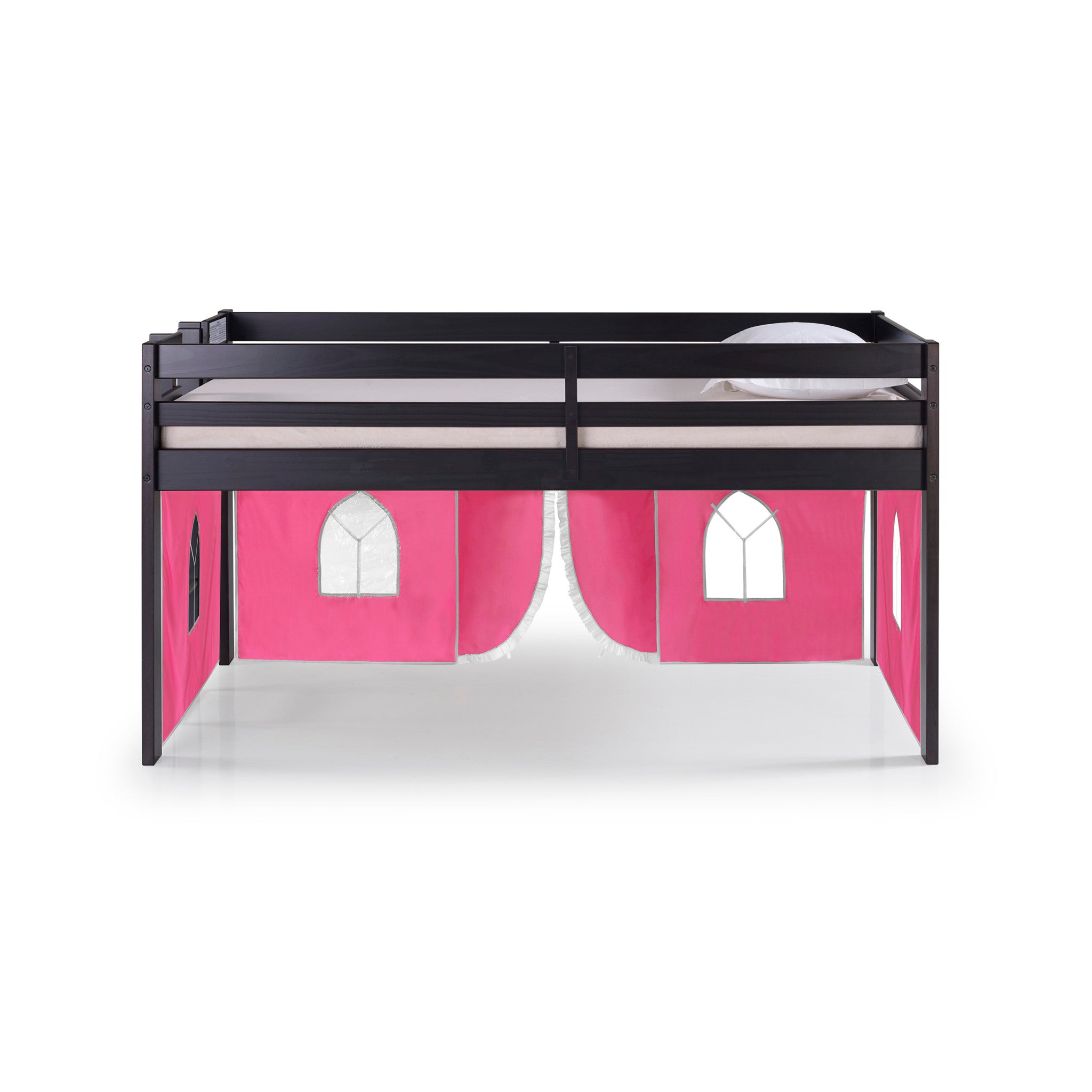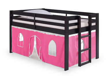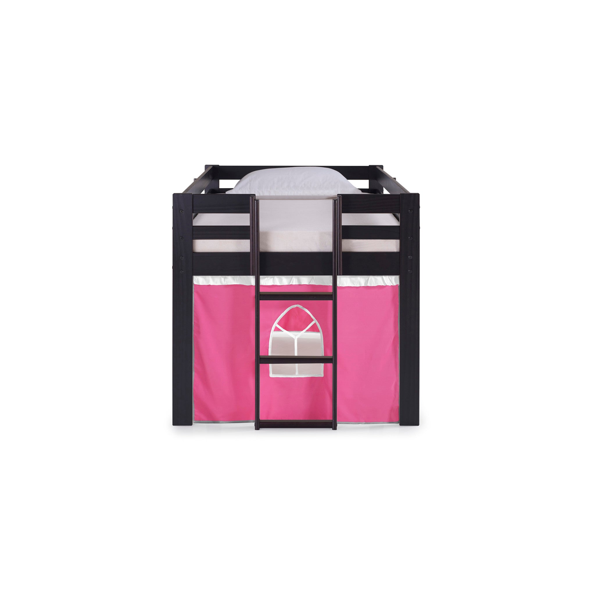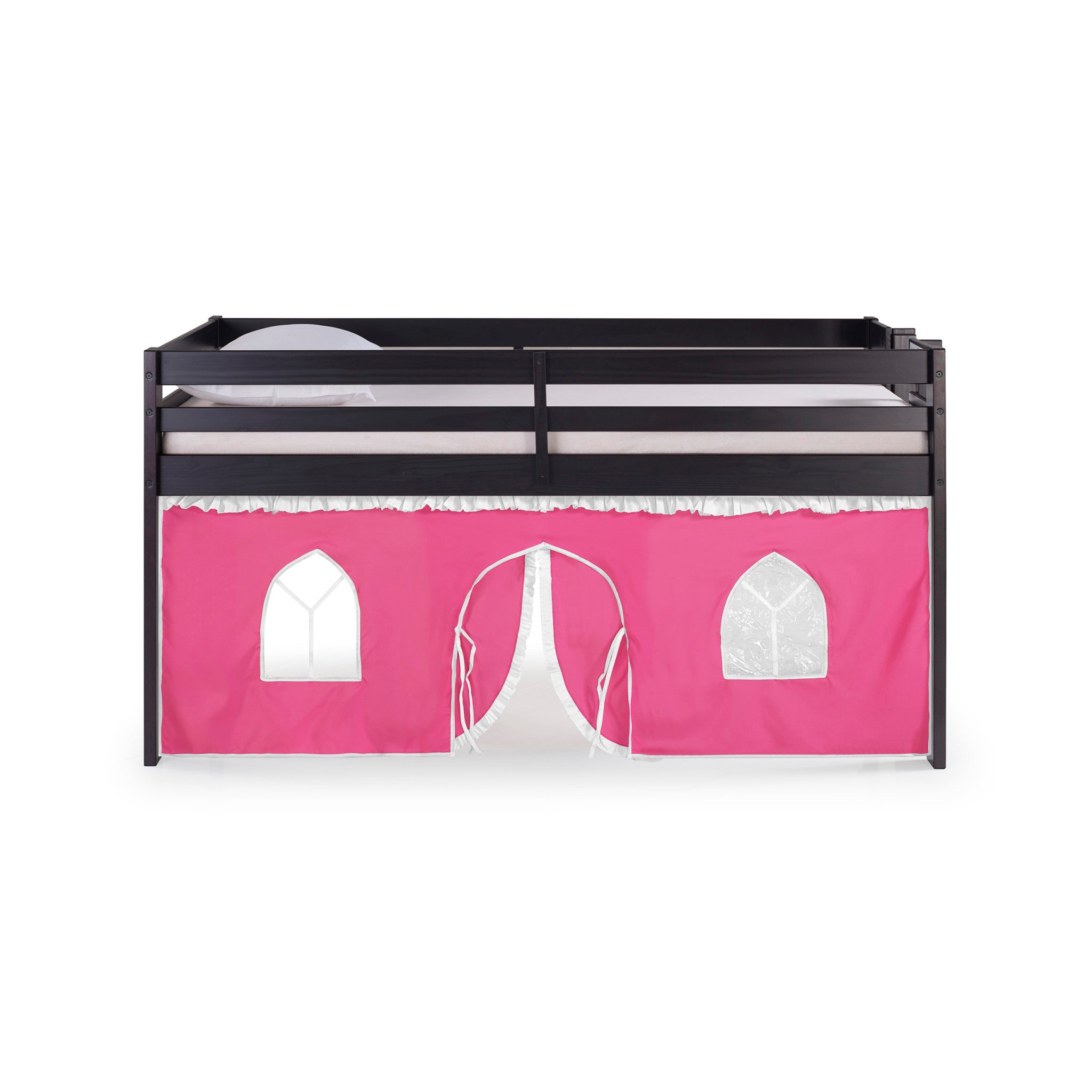 Jasper Twin Junior Loft Bed, Espresso Frame and Pink/White Bottom Playhouse Tent