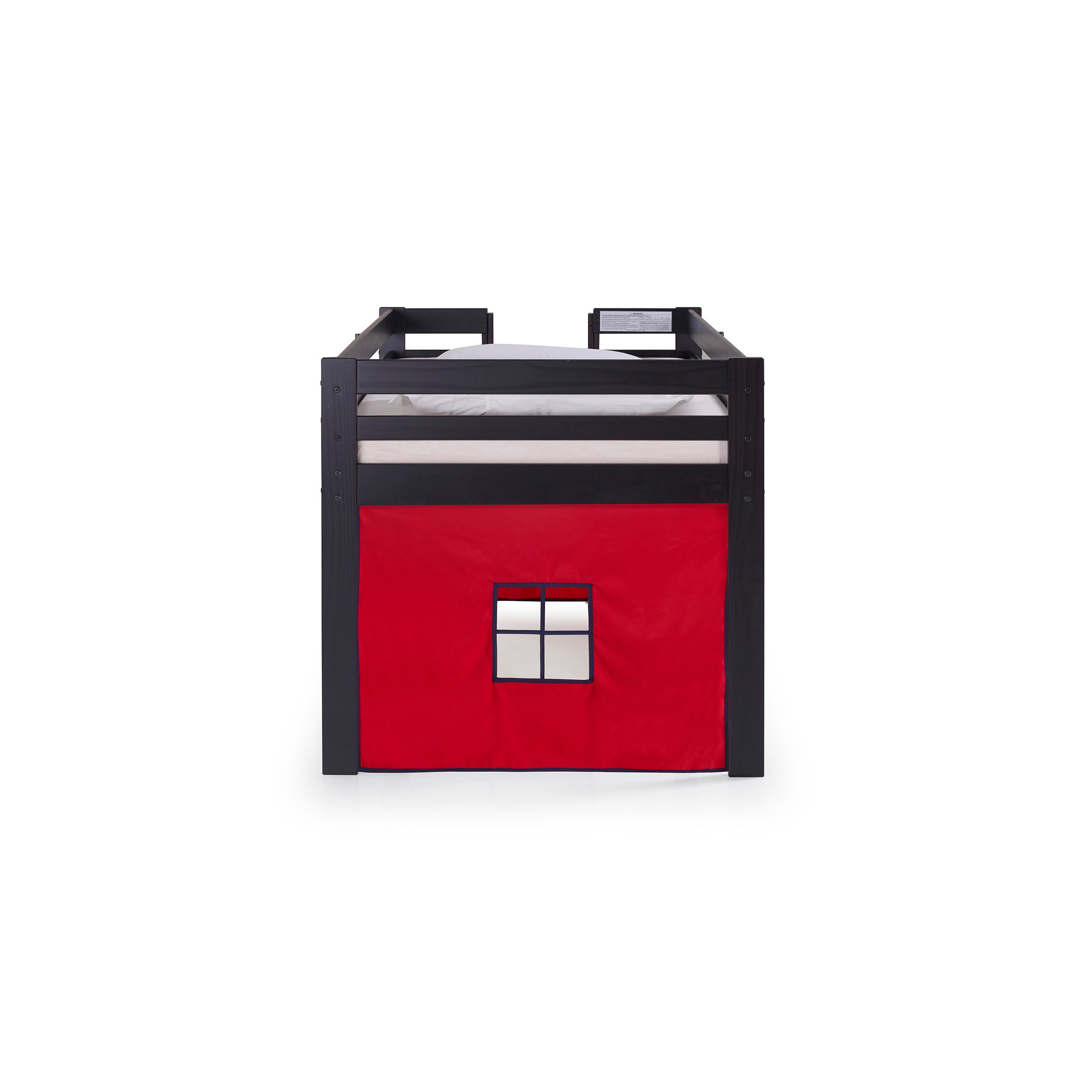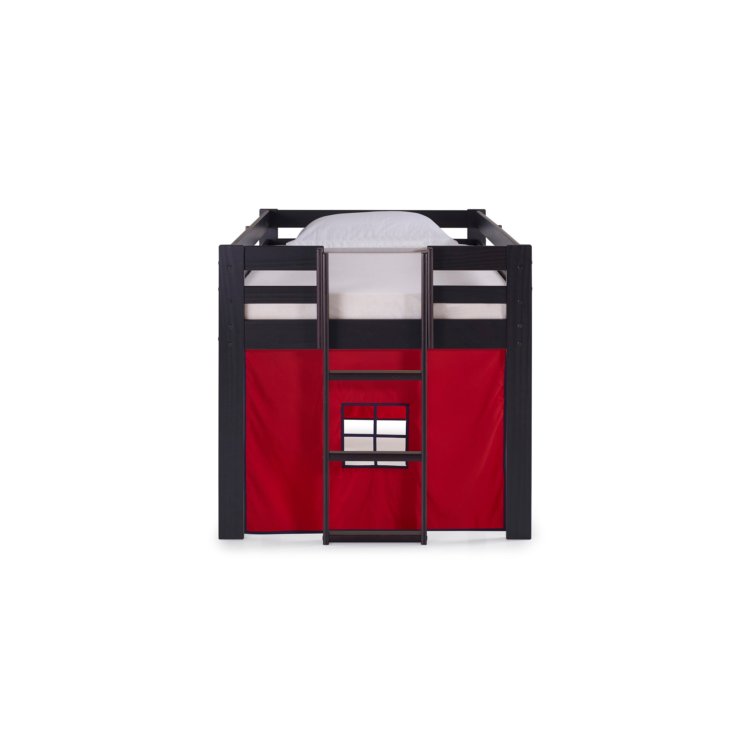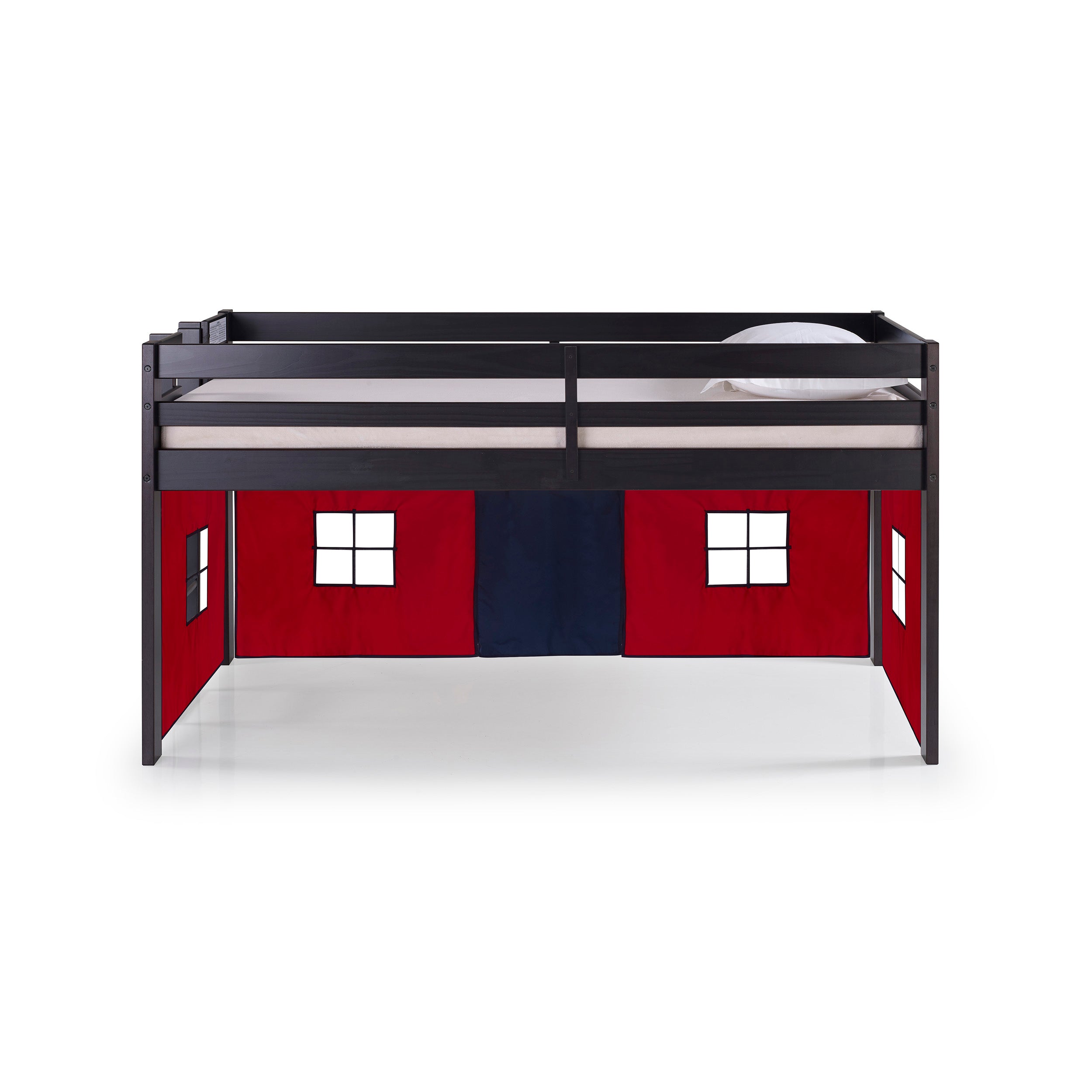 Jasper Twin Junior Loft Bed, Espresso Frame and Red/Blue Bottom Playhouse Tent