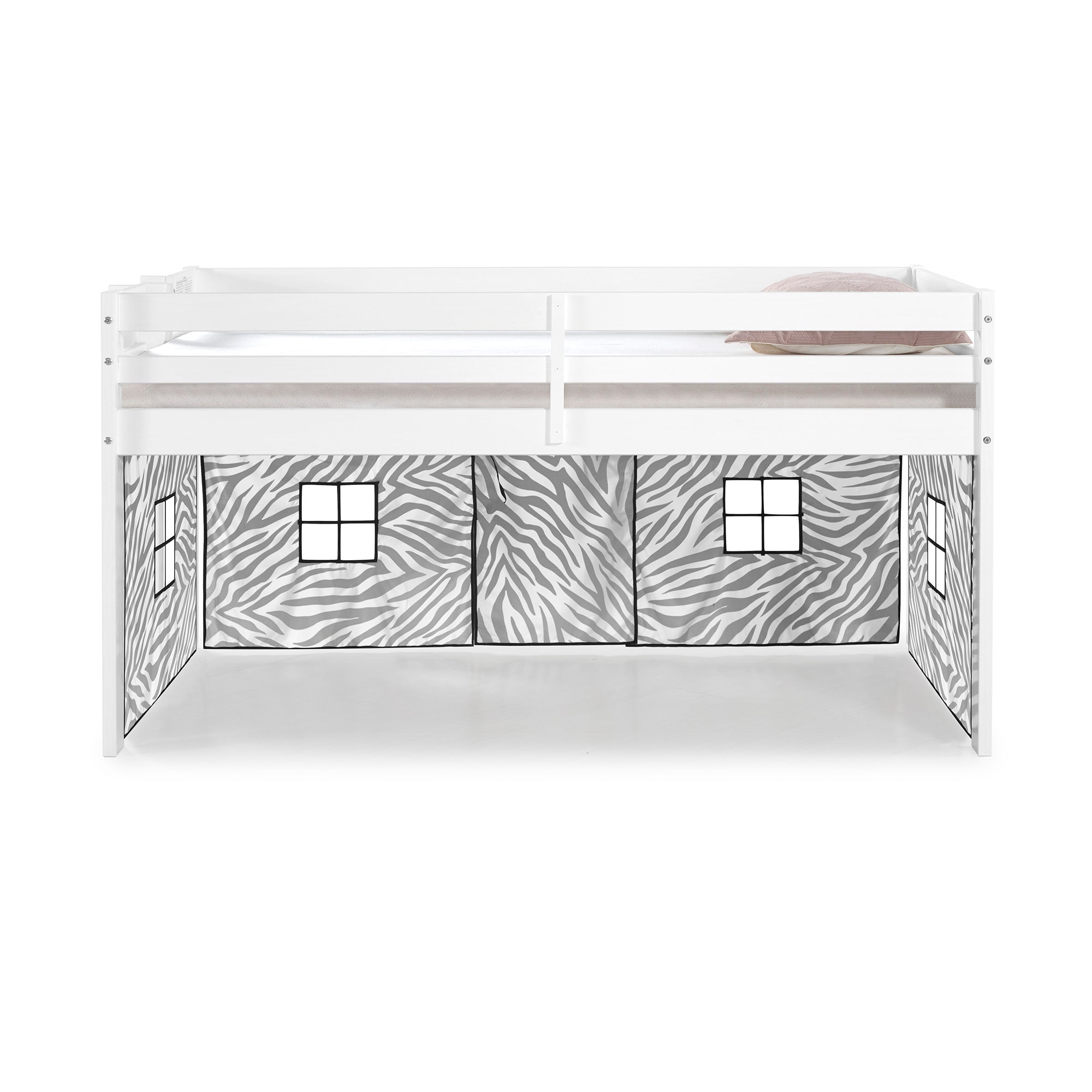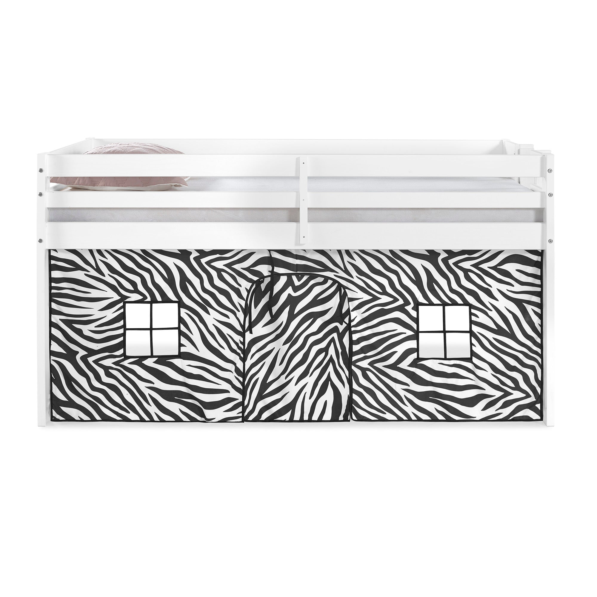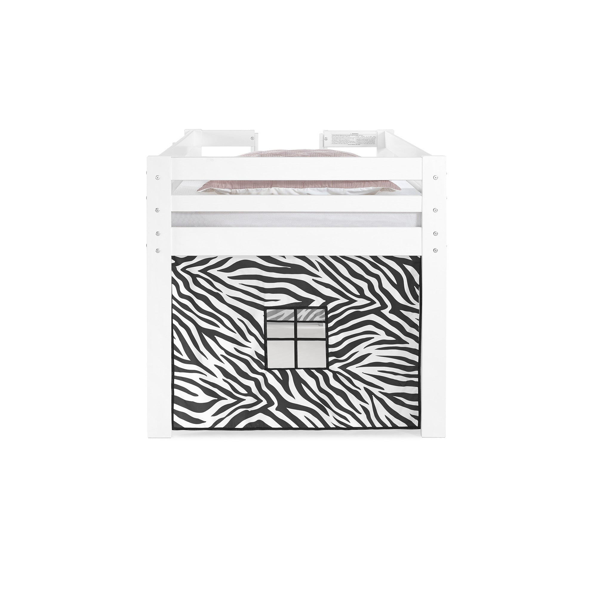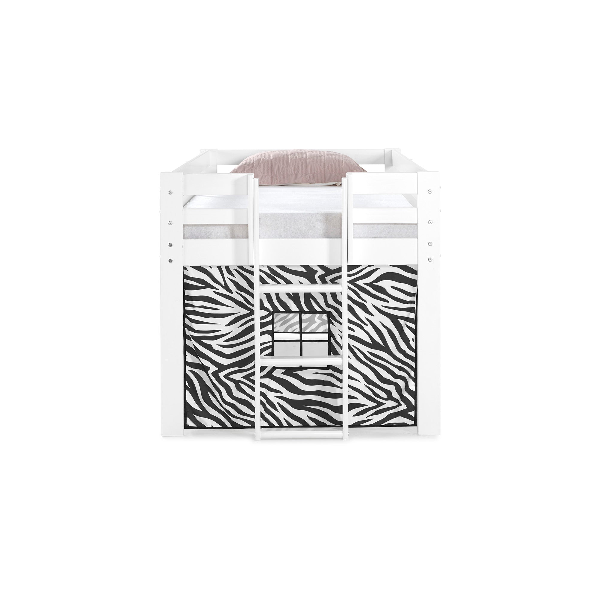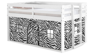 Jasper Twin Junior Loft Bed, White Frame and Black/White Zebra Print Bottom Playhouse Tent