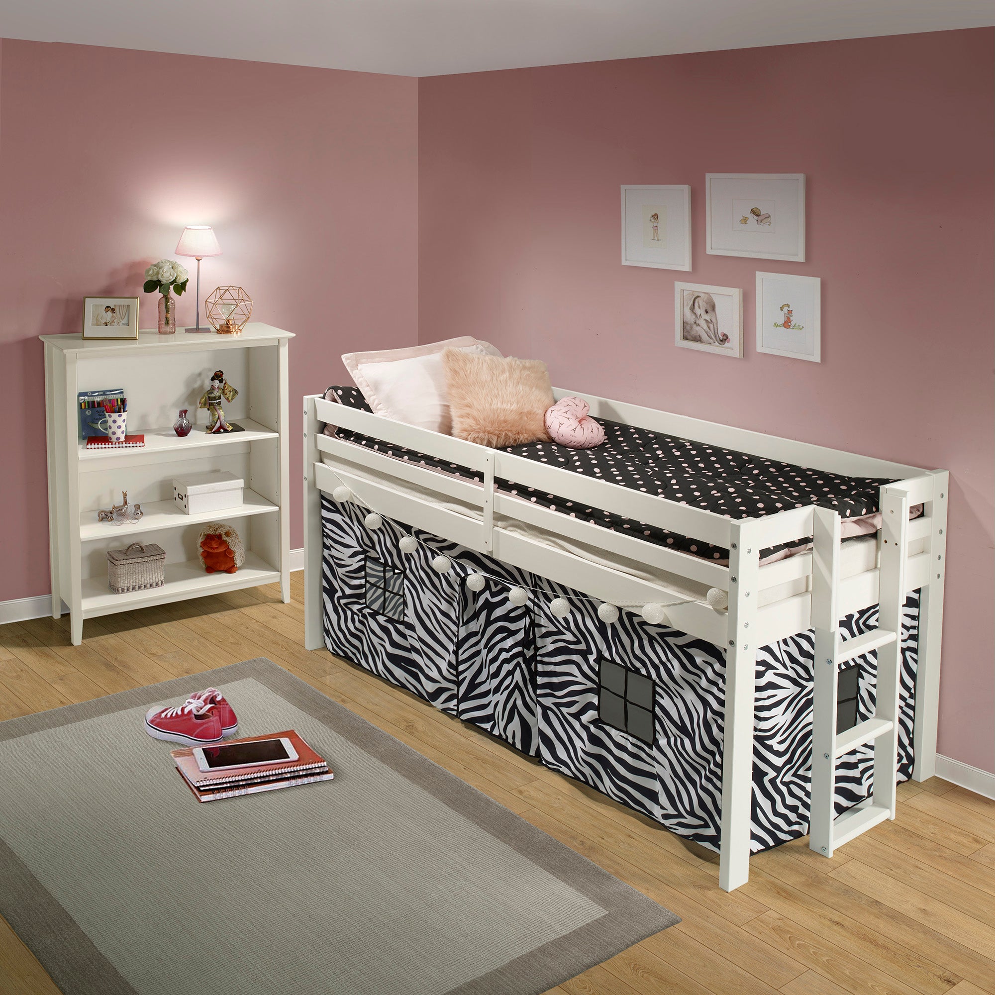 - [COMFORT & COMPATIBILITY] Includes a cozy twin-sized loft bed designed to inspire creativity and fun; the under-bed playhouse tent in a striking black and white zebra print offers a private, imaginative space for children to play and dream