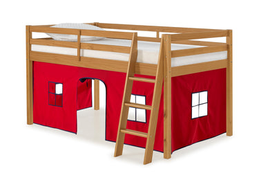 Roxy Twin Wood Junior Loft Bed with Cinnamon with Red and Blue Bottom Tent