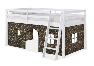 Roxy Twin Wood Junior Loft Bed with White with Green Camo Tent