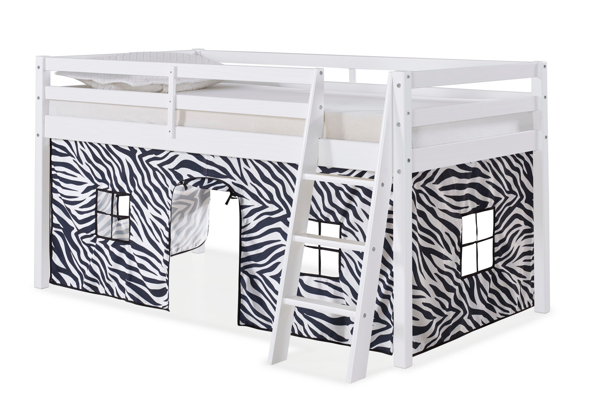Roxy Twin Wood Junior Loft Bed with White with Zebra Tent