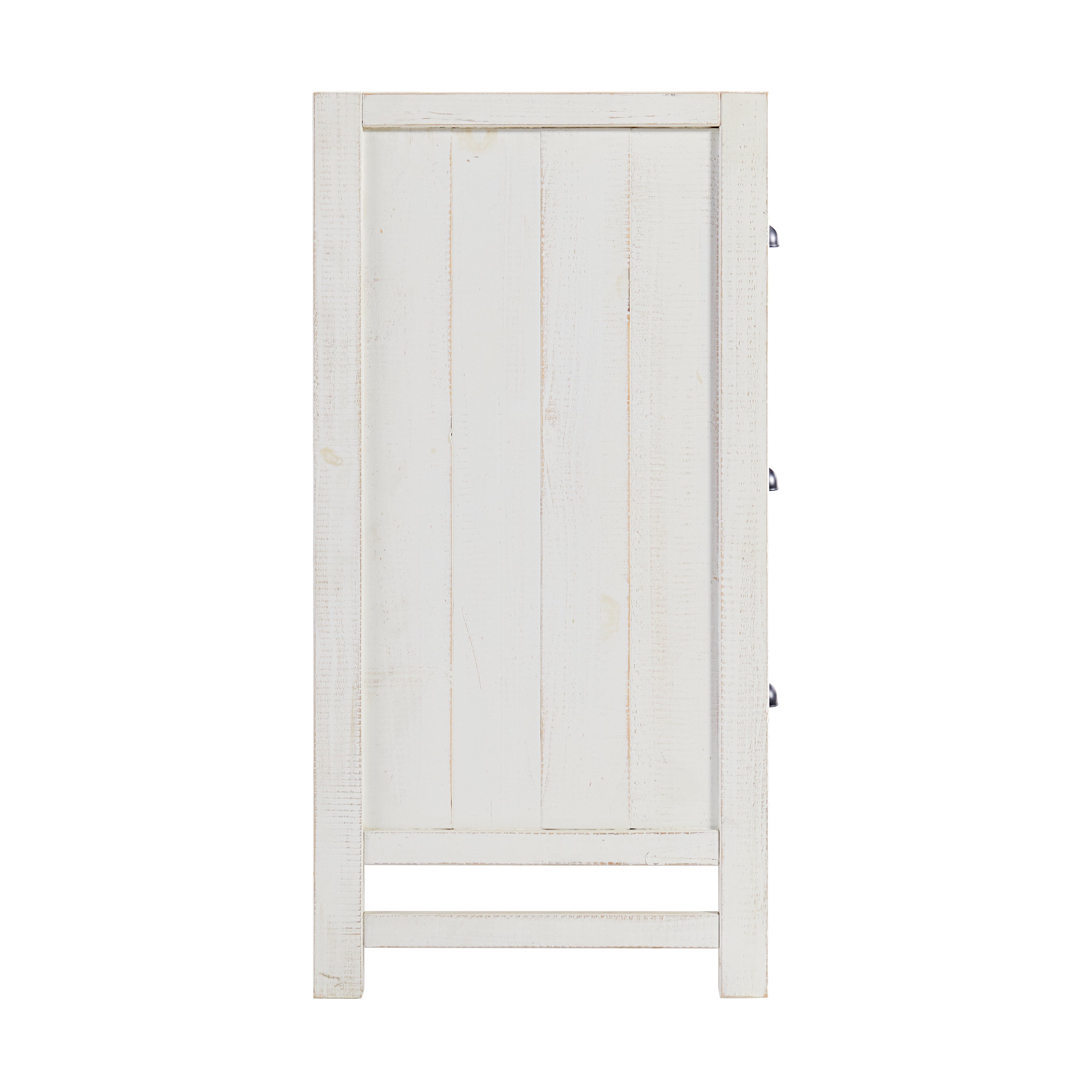 - [VISUAL APPEAL AND FUNCTIONALITY] Featuring a distressed driftwood white finish, this cabinet highlights the natural pine grain. Dark metal drawer pulls accentuate the rustic charm, making it a stylish addition to any bedroom decor