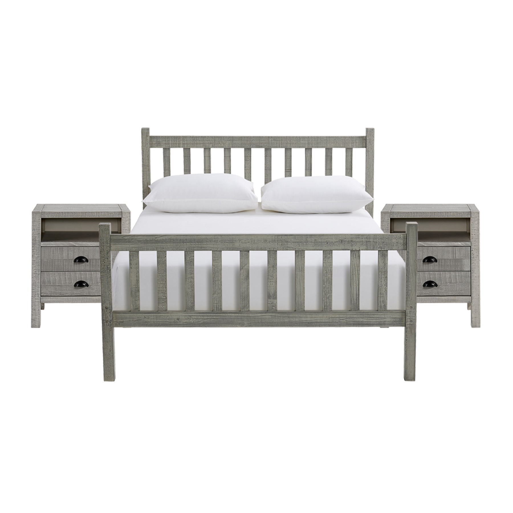 Windsor 3-Piece Bedroom Set with Slat Full Bed and 2 Nightstands, Gray