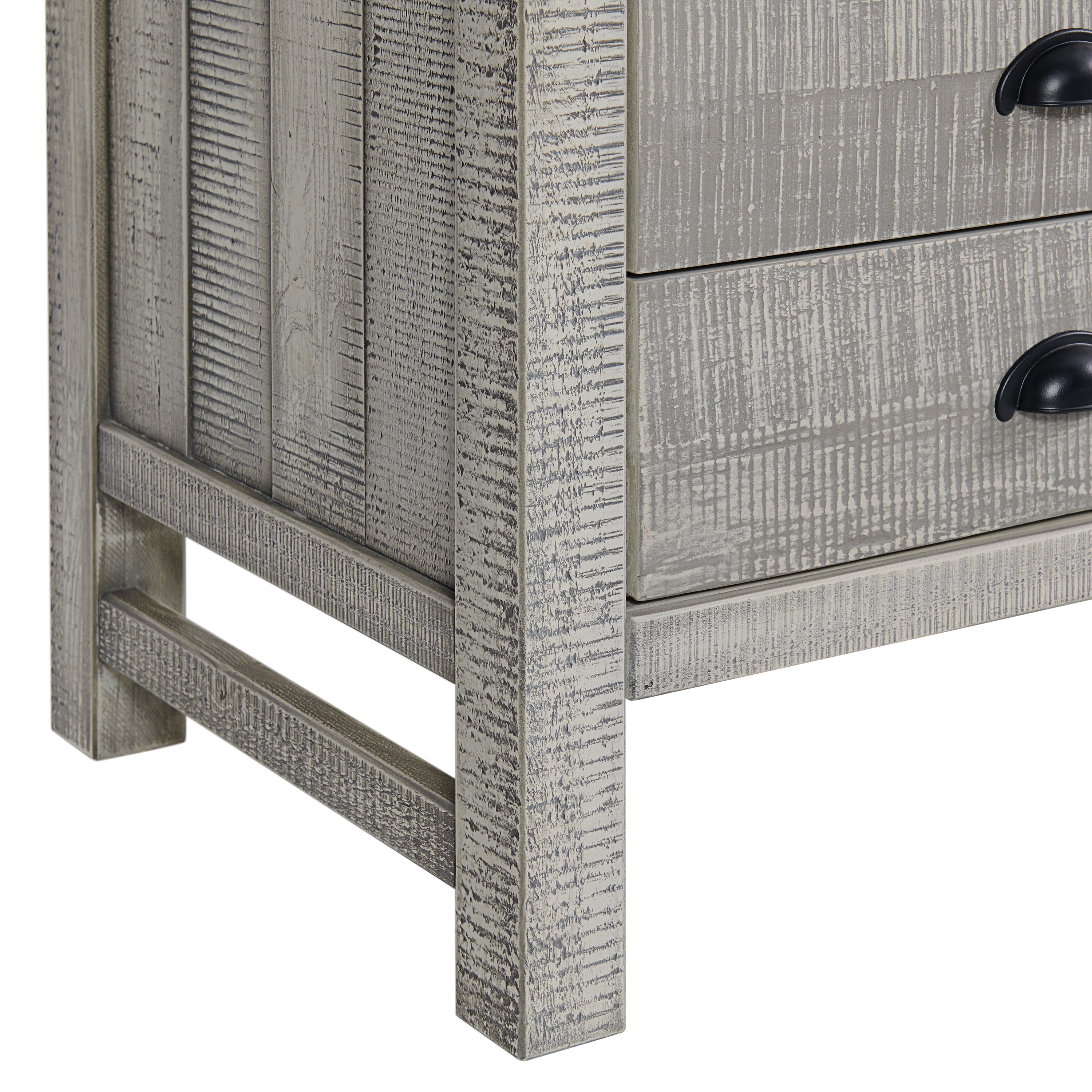 Complete your bedroom's look with a clean-lined, rustic-style inspired design. Perfect for your child's room, guest room or any smaller bedroom space. The distressed finish showcases the natural beauty of the wood grain. Dark metal drawer pulls complement the washed, distressed finish beautifully. Beautiful and functional, this collection will perfectly complement any room decor. Constructed from pine wood, our furniture is meant to be stylish and durable.