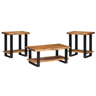 - [STATEMENT] Transform your living room with the Alpine Natural Acacia Wood Live Edge Coffee Table and two End Tables