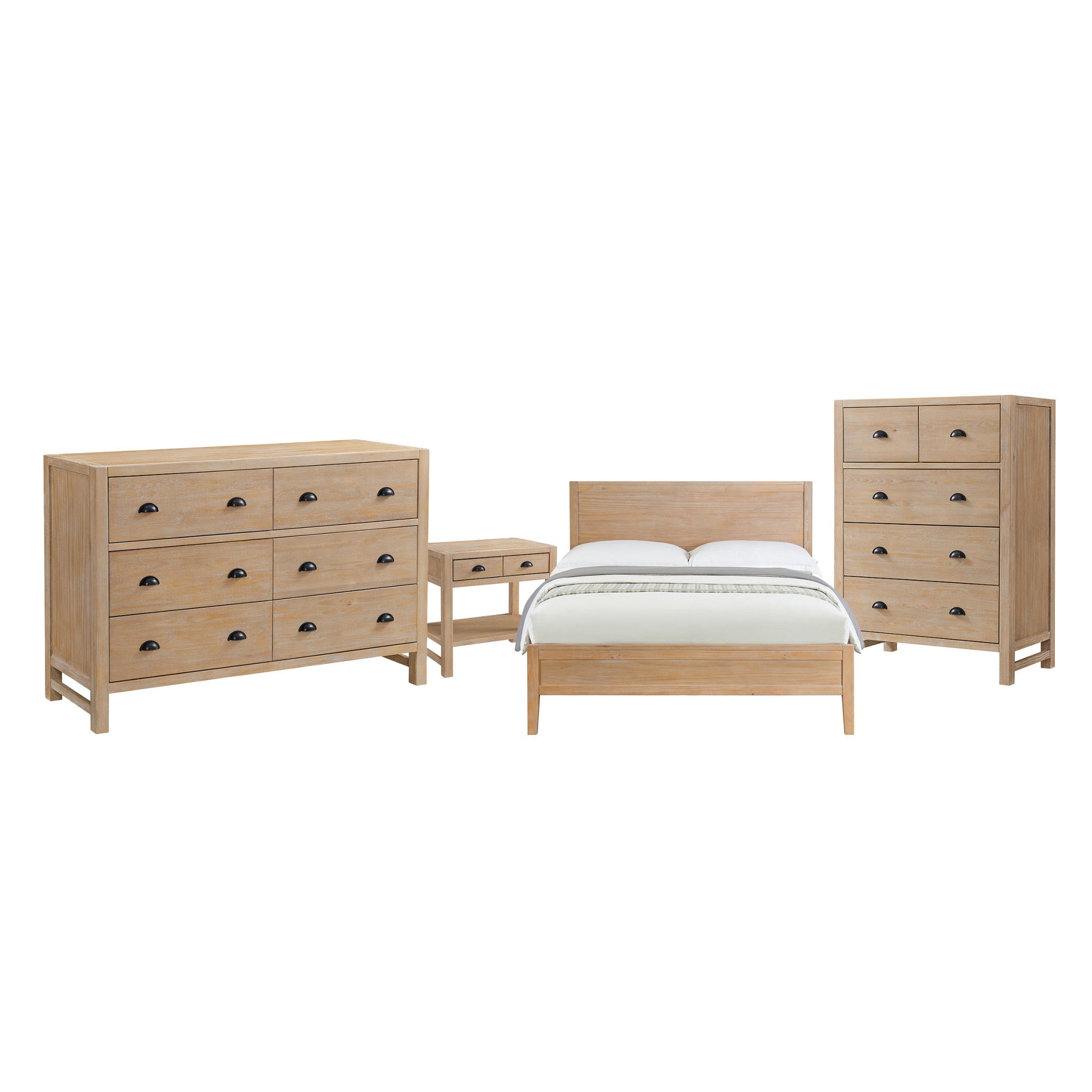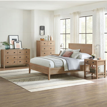 - [QUALITY CRAFTSMANSHIP AND DURABLE MATERIALS] The Arden 5-Piece Wood Bedroom Set, made from solid pine wood, showcases a light driftwood finish that highlights the natural grain. Built to last, it's the perfect timeless bedroom addition