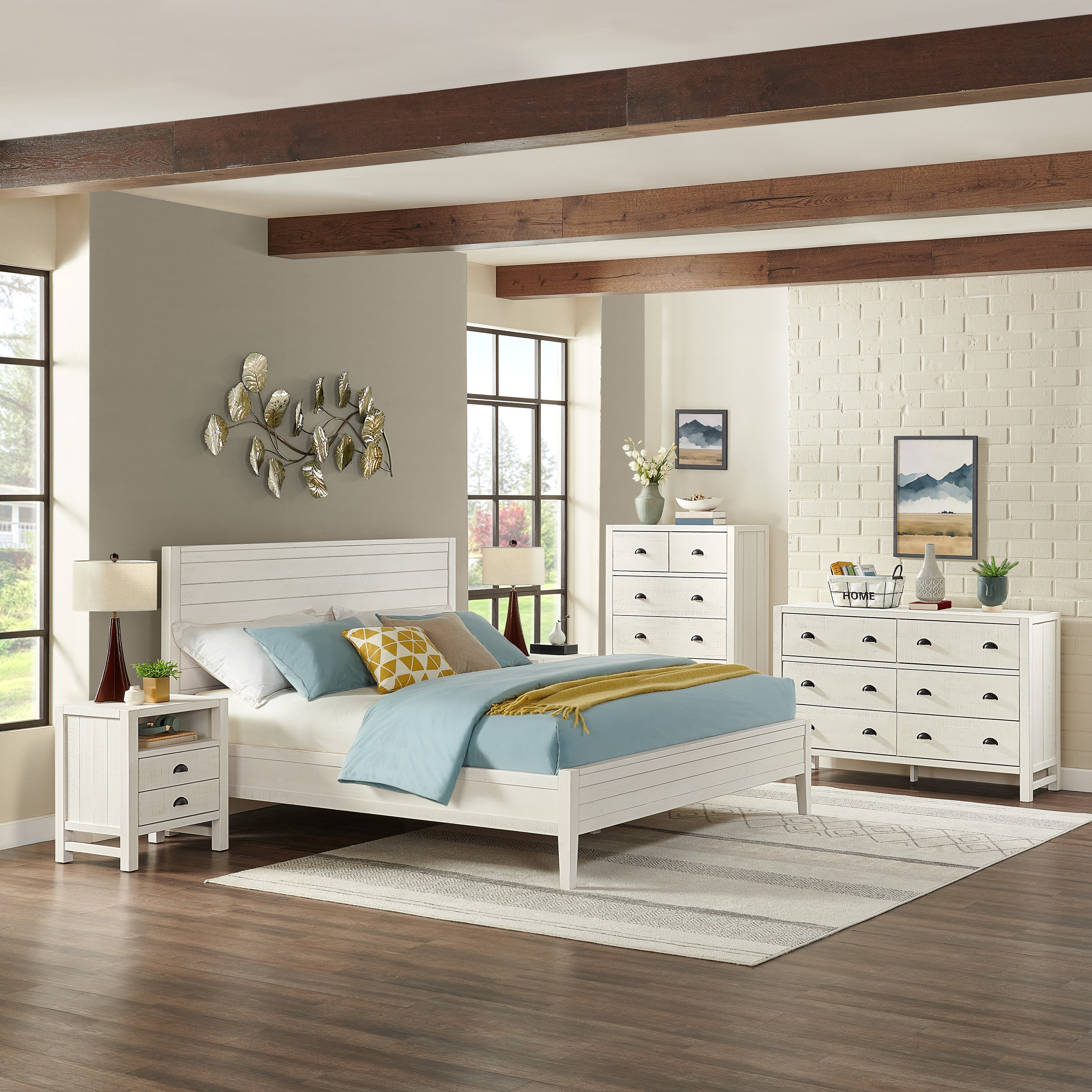 - [TIMELESS DESIGN MEETS MODERN FUNCTIONALITY] The Arden 5-Piece Wood Bedroom Set features a king bed, 2 nightstands, a chest, and a dresser. Finished in driftwood white, the solid pine wood highlights natural beauty for a cohesive bedroom style