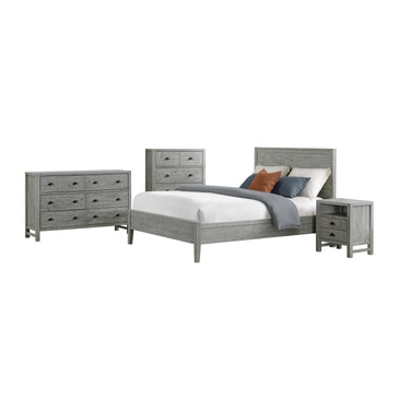 Arden 4-Piece Wood Bedroom Set with Queen Bed, 2-Drawer Nightstand, 5-Drawer Chest, 6-Drawer Dresser, Driftwood Gray