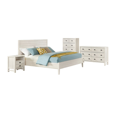 Arden 4-Piece Wood Bedroom Set with King Bed, 2-Drawer Nightstand, 5-Drawer Chest, 6-Drawer Dresser, Driftwood White