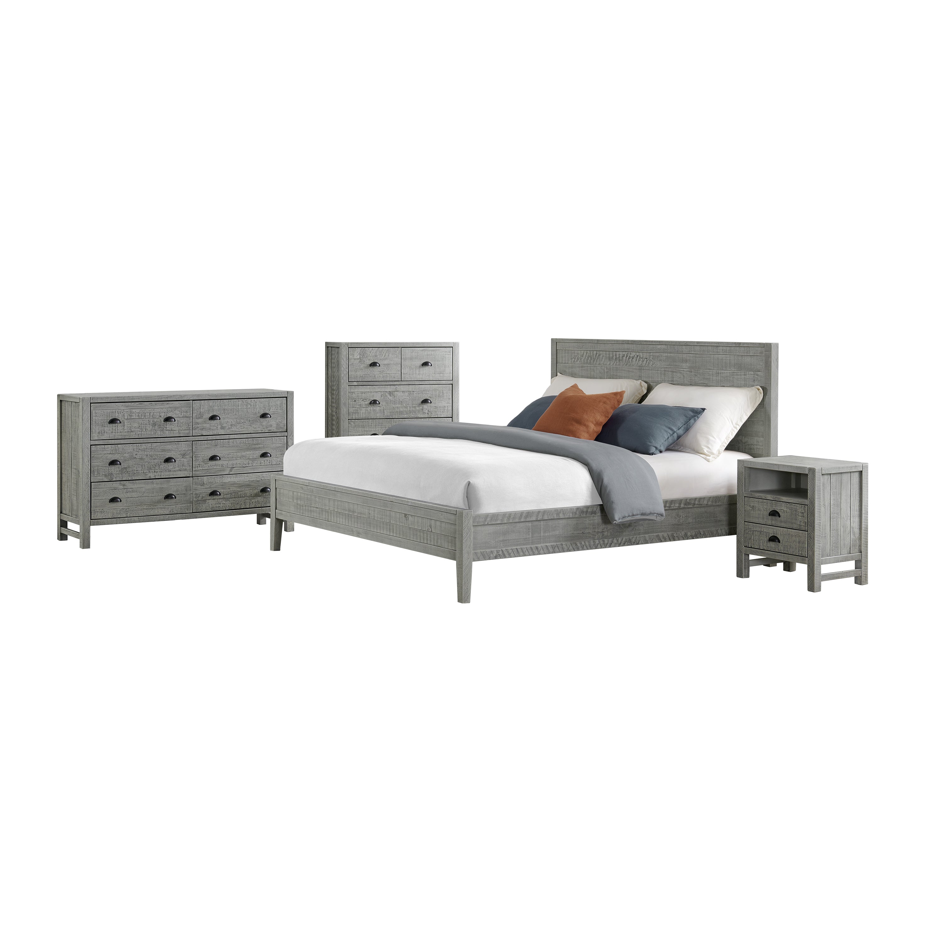 Arden 4-Piece Wood Bedroom Set with King Bed, 2-Drawer Nightstand, 5-Drawer Chest, 6-Drawer Dresser, Driftwood Gray