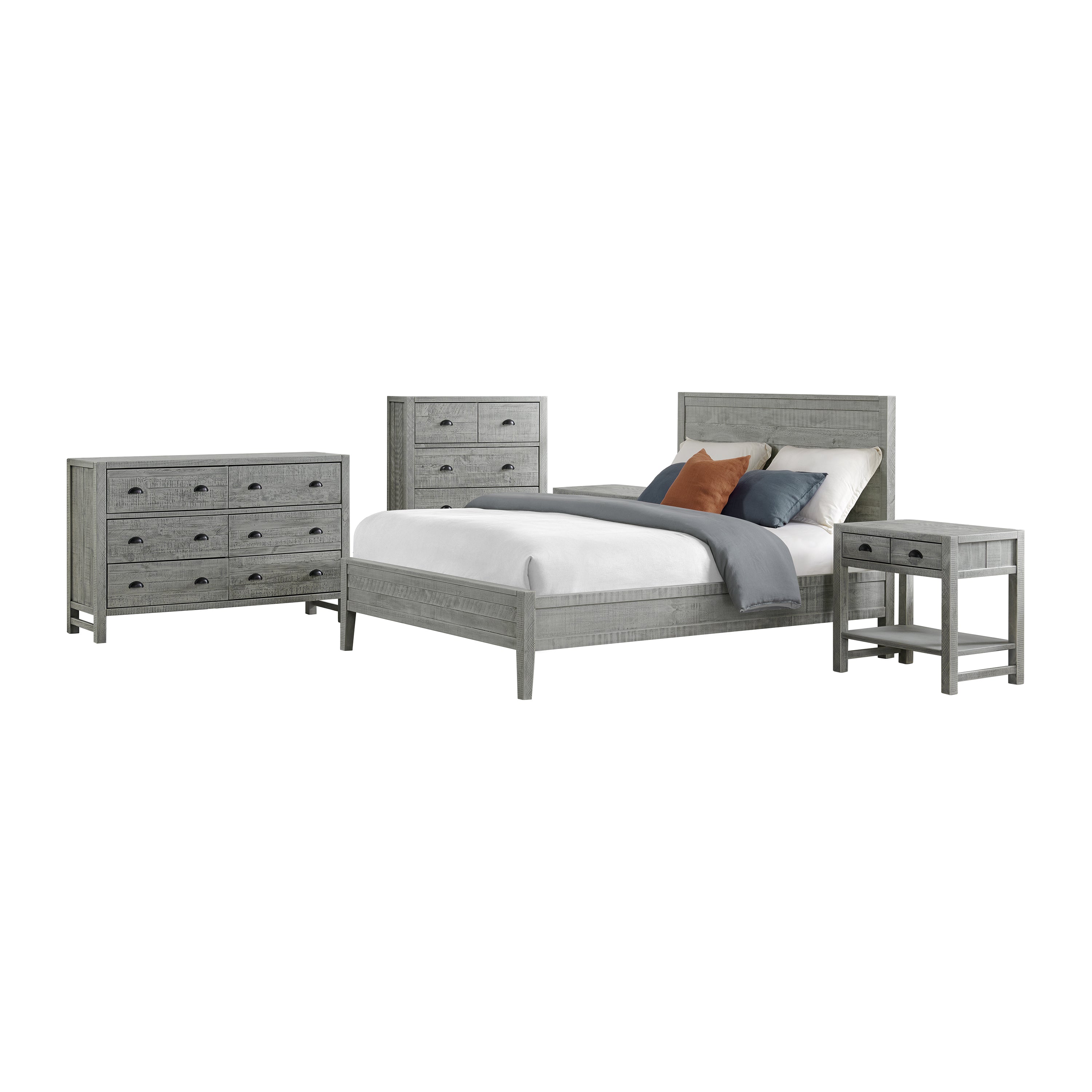 - [SPACIOUS AND STYLISH STORAGE] Queen-sized bed with matching nightstands, chest, and dresser. Pine wood in light driftwood gray finish offers natural elegance