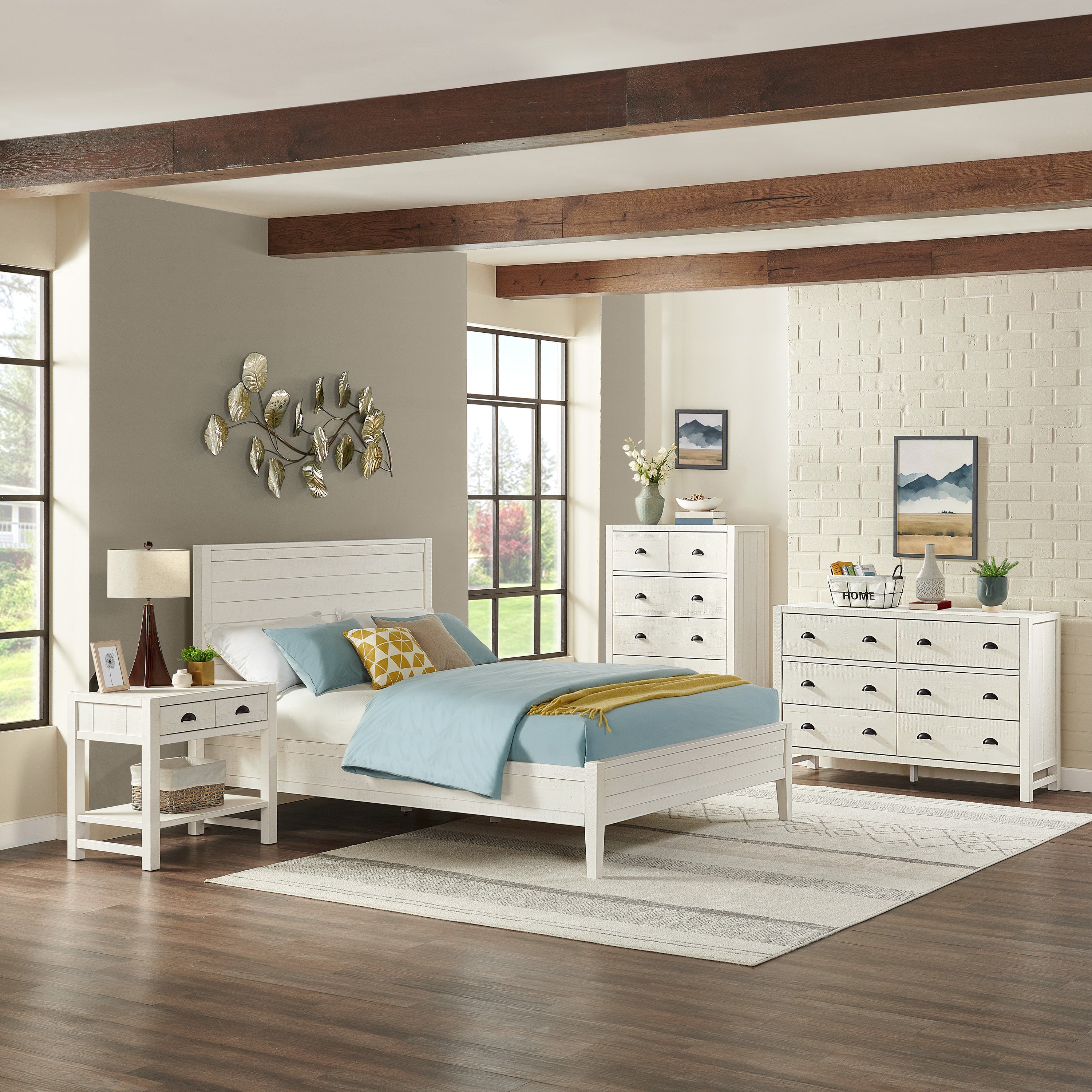 - [CRAFTED FOR DURABILITY] This 4-piece bedroom set, made from solid pine wood, features a light driftwood white finish for rustic charm. The natural wood grain enhances any bedroom decor, designed to withstand years of use