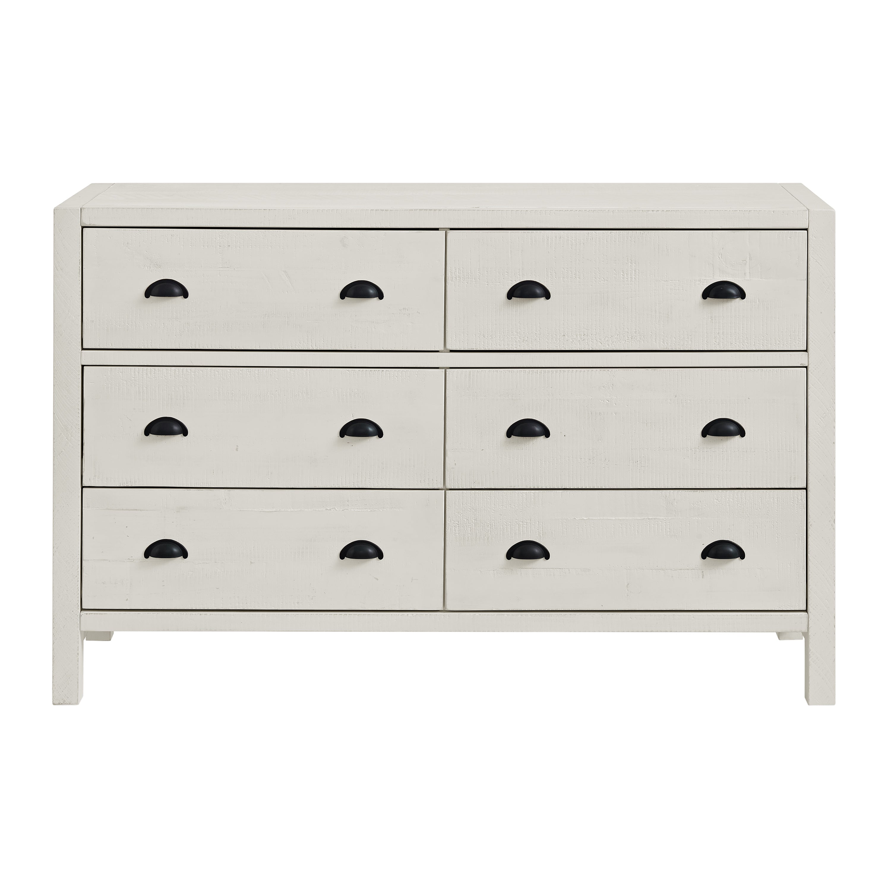 Simple yet striking, this bedroom collection transforms your space into an inviting haven. Keep your bedroom organized with this 6-drawer double dresser. Provides ample storage for your clothes, blankets, and accessories. The versatile style complements a wide array of styles ranging from modern rustic to a boho retreat. Made of solid pine wood. These pieces are well constructed, durable, and will last for years to come. The light driftwood finish highlights tonal variations, grain and marks that are unique to each piece. Assembly required.
