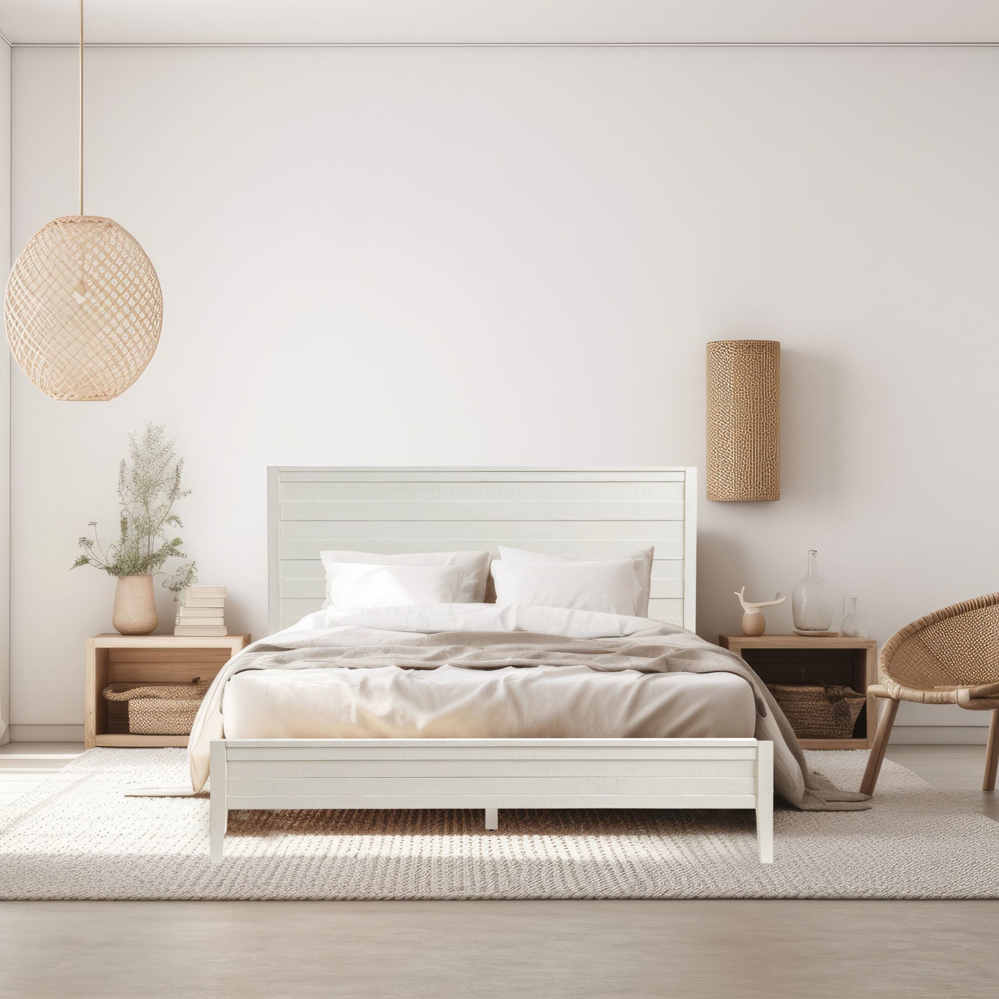 • [MATERIAL QUALITY AND DURABILITY] The Arden Panel Wood King Bed is crafted from solid Brazilian Pine with a light driftwood finish, ensuring durability and a natural aesthetic