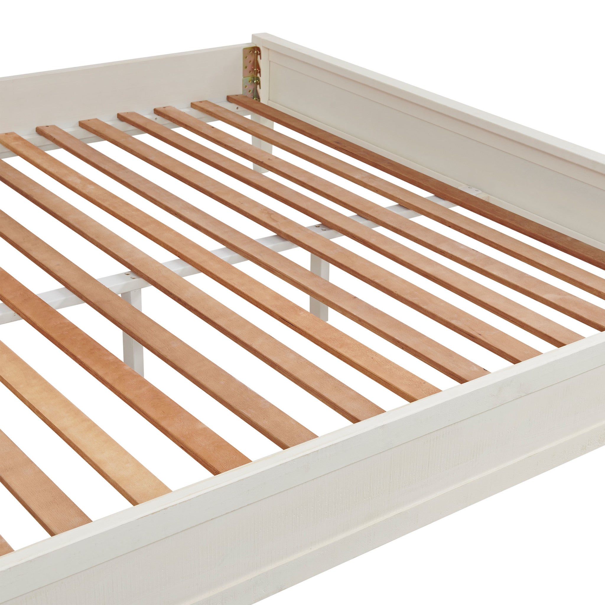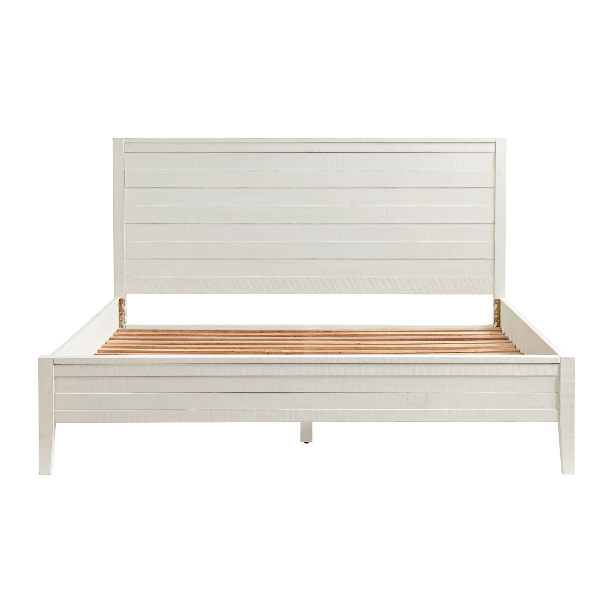 Simple yet striking, this bedroom collection transforms your space into an inviting haven. The centerpiece of your restful retreat, this bed is the perfect spot to curl up at the end of the day. The versatile style complements a wide array of styles ranging from modern rustic to a boho retreat. Made of solid pine wood. These pieces are well constructed, durable, and will last for years to come. The light driftwood finish highlights tonal variations, grain and marks that are unique to each piece. Each bed includes slats so there is no box spring required. Incorporated with a high profile headboard and low profile footboard, it will be a perfect addition to your restful retreat. Assembly required.