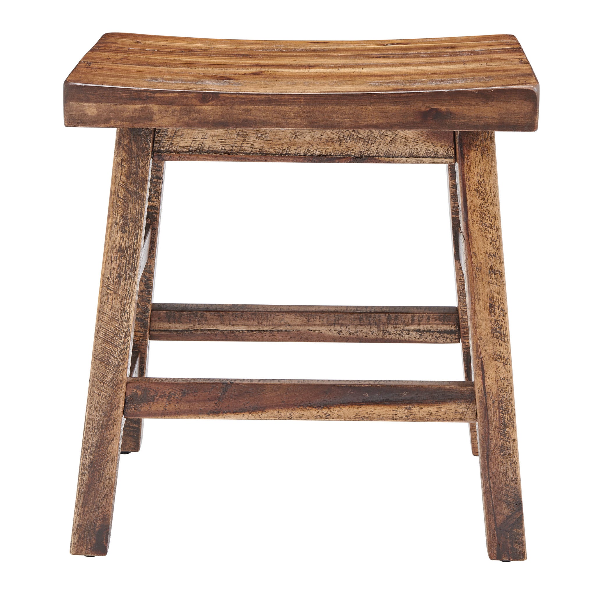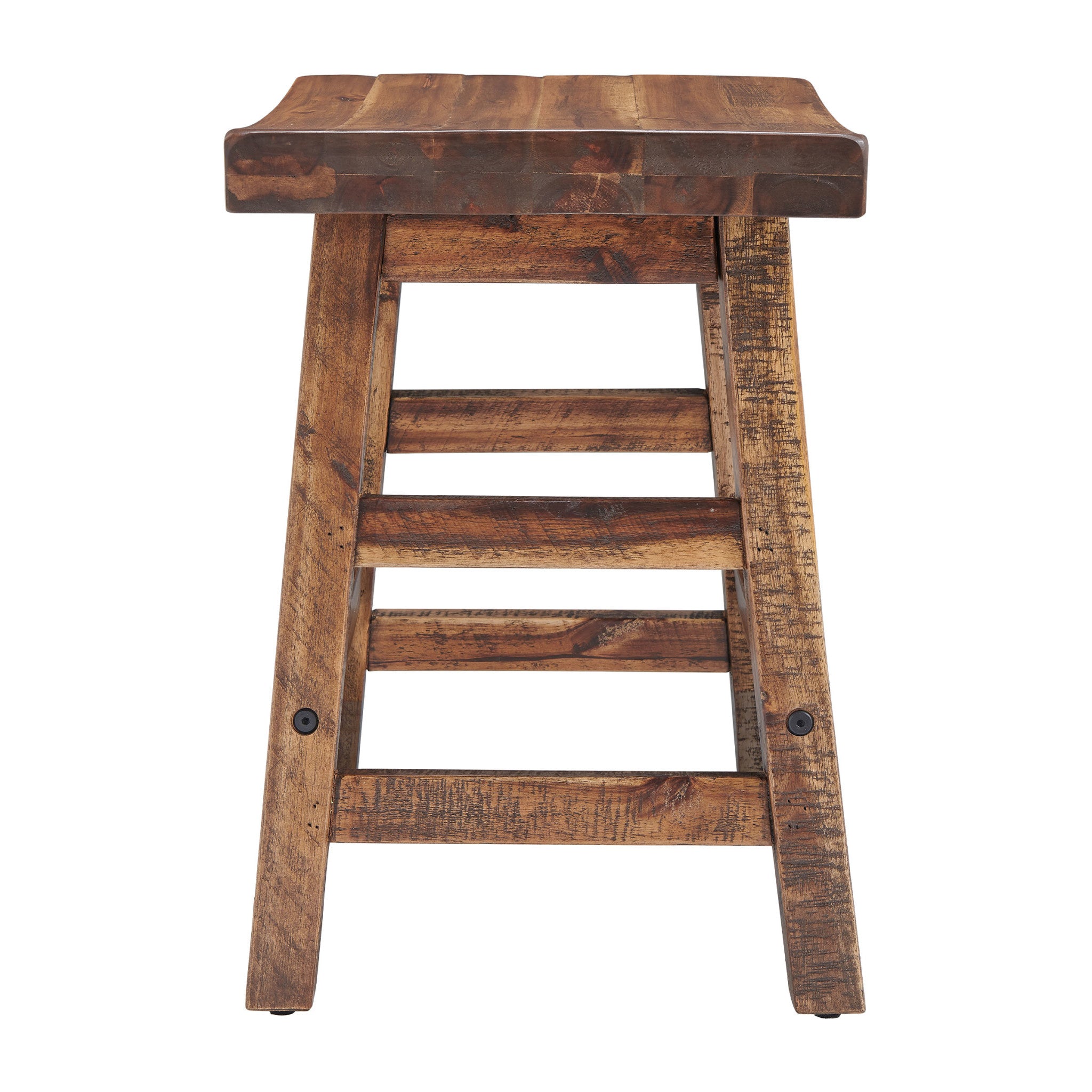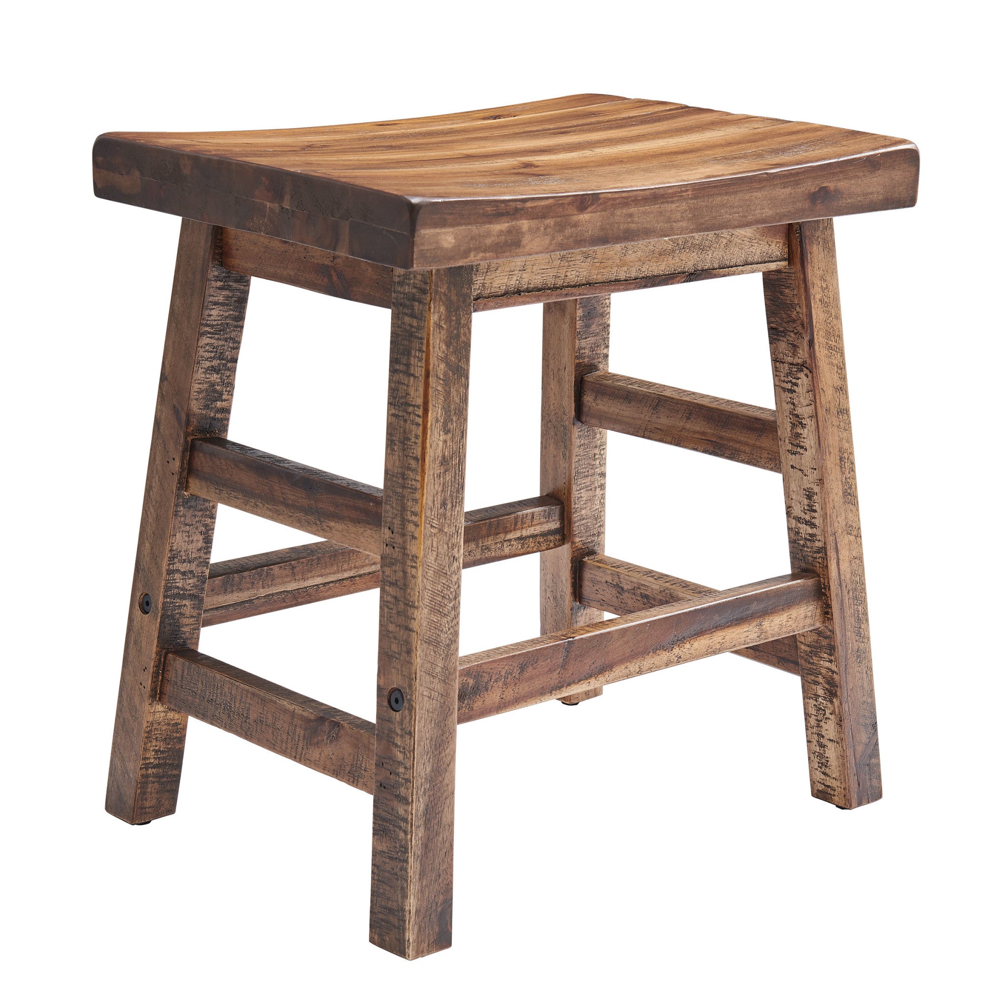 - RUSTIC INDUSTRIAL DETAILS – A rugged truss-leg design, exposed metal bolts, and a distressed wood tone give this backless stool its signature industrial farmhouse aesthetic, perfect for lofts, cabins, or modern rustic interiors.