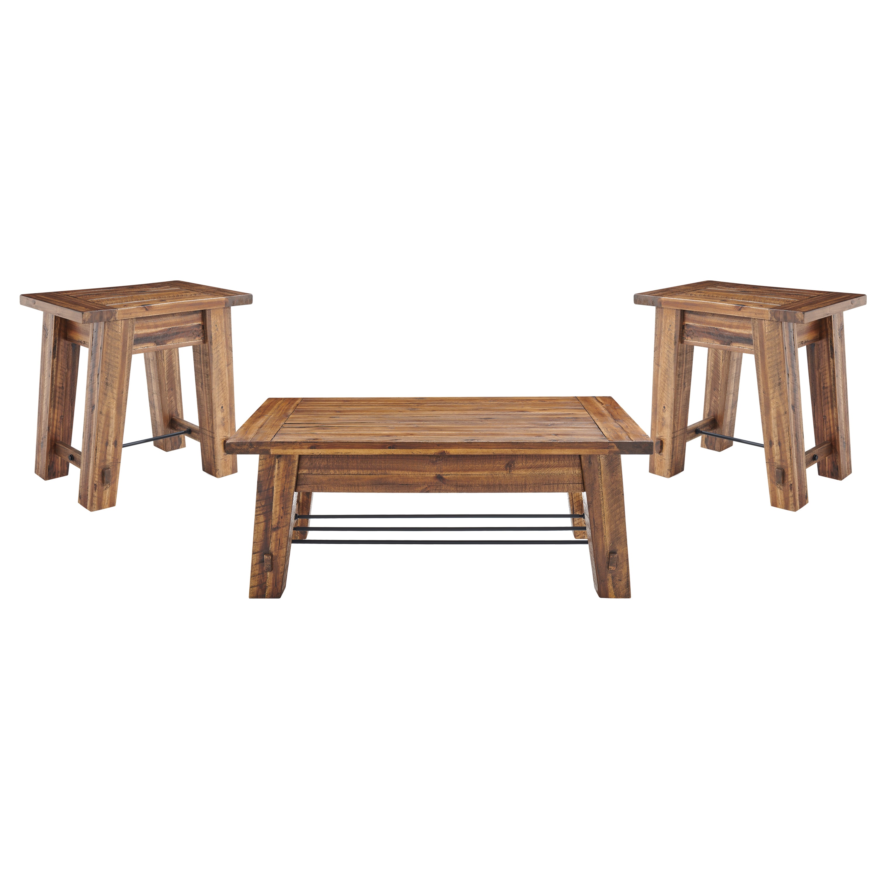 This is a bold, industrial collection that will make a statement in your living space. With a truss construction, bolts and metal bar accents, you will love how these pieces take your decor to a new level. Knots, cracks and even rough-hewn edges showcase the wood's original qualities. Our lacquer finish with light and dark tones allows for the wood's natural grain to show through.