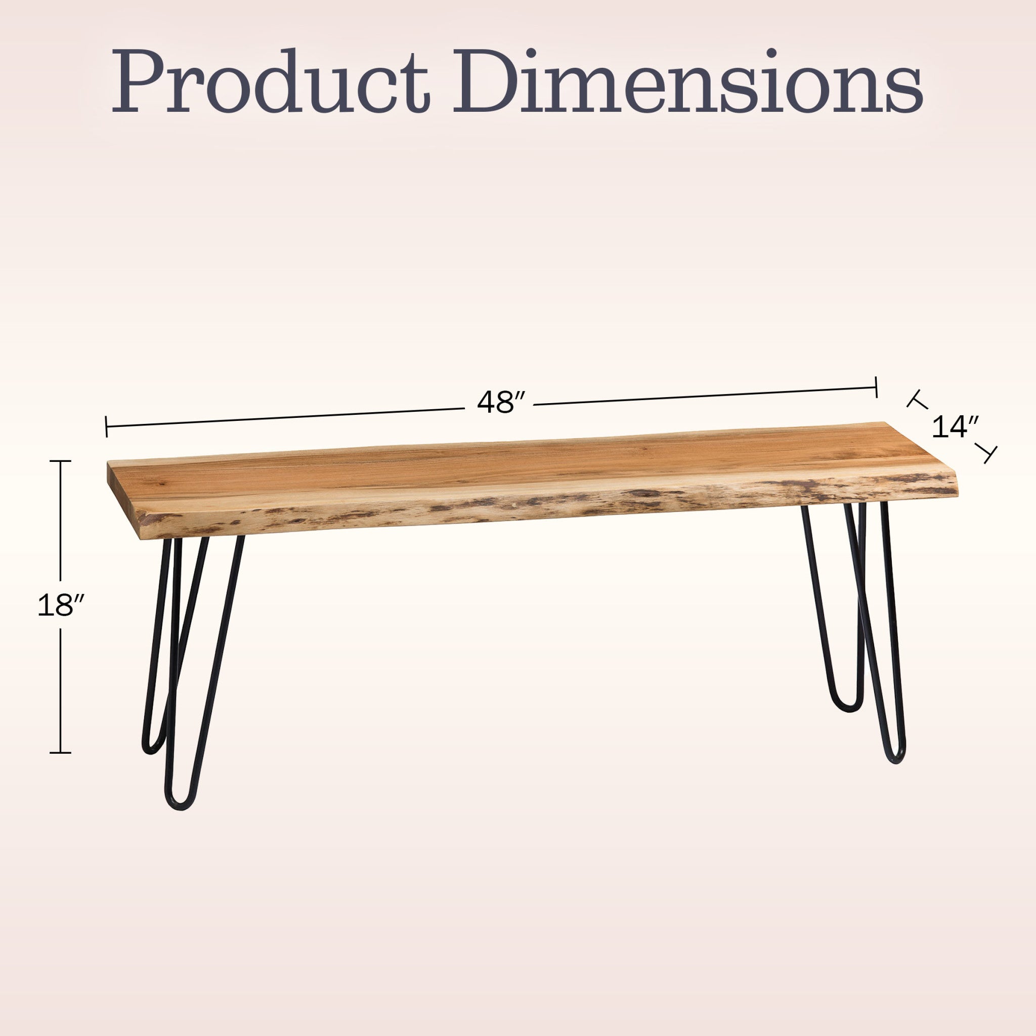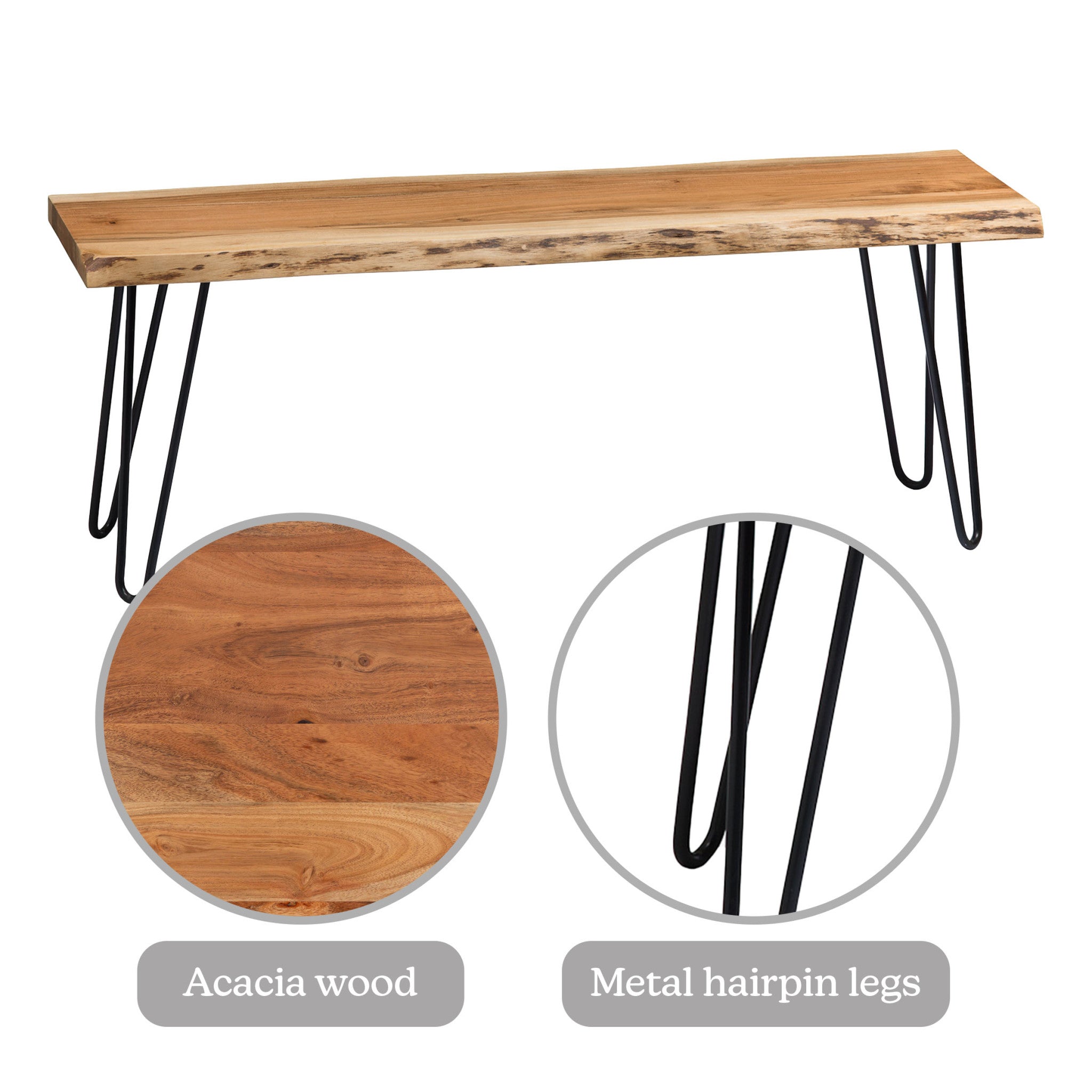 - Crafted from natural live edge wood and metal hairpin legs, this farmhouse bench offers an earthy, natural feel and an artisanal modern look, perfect for any room