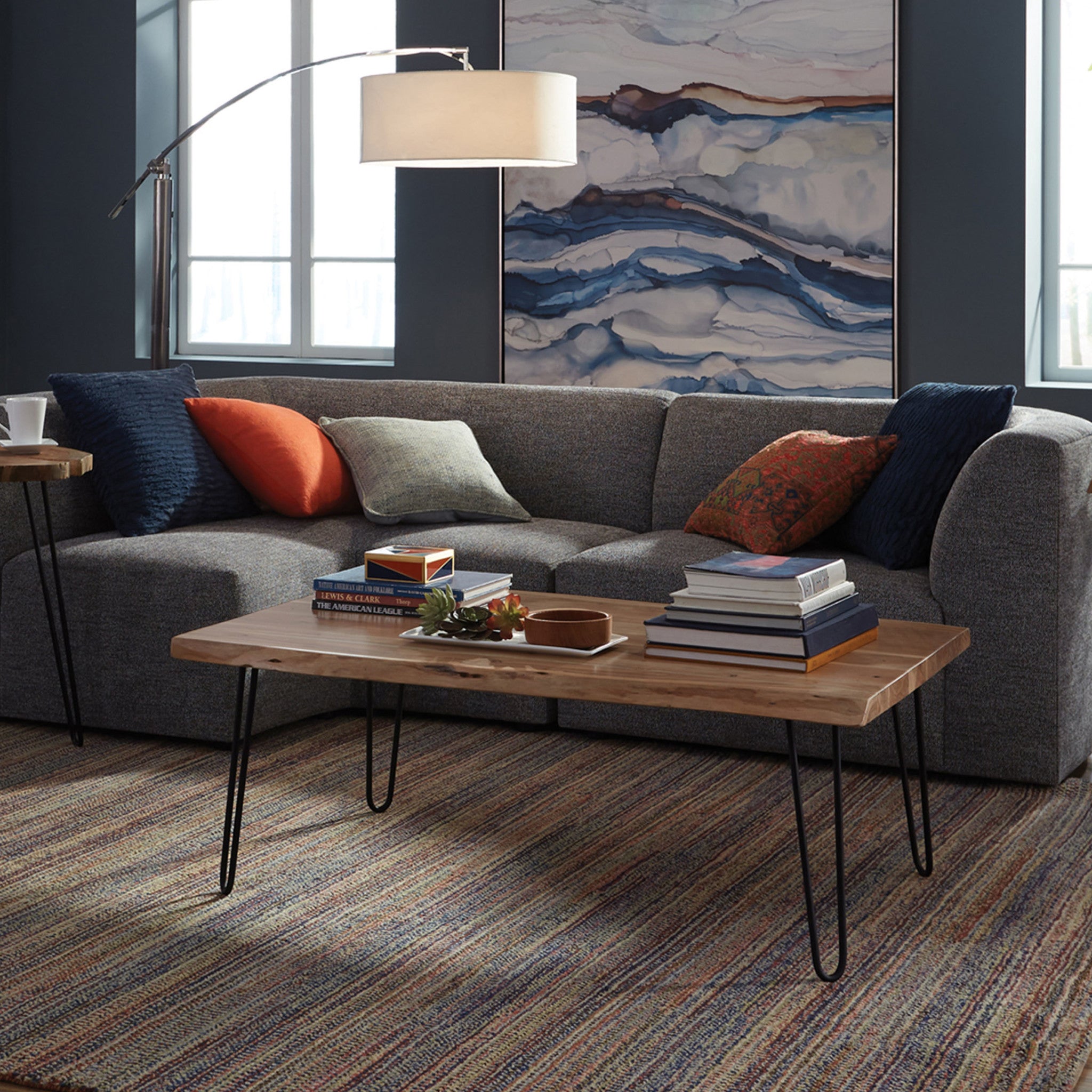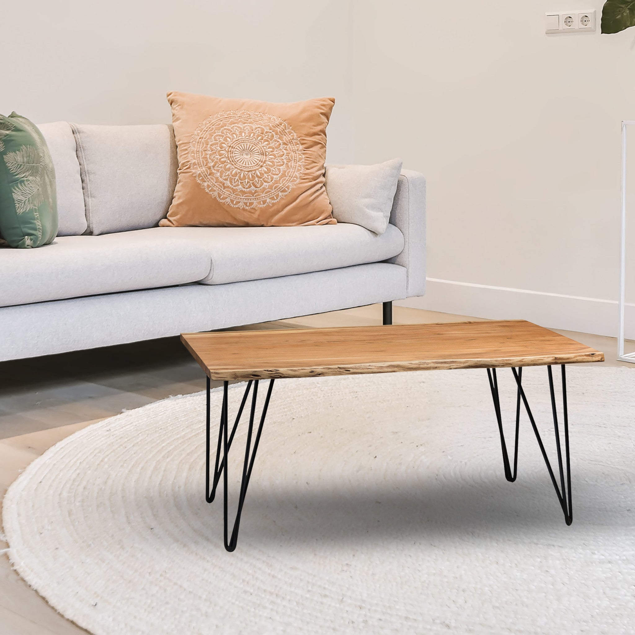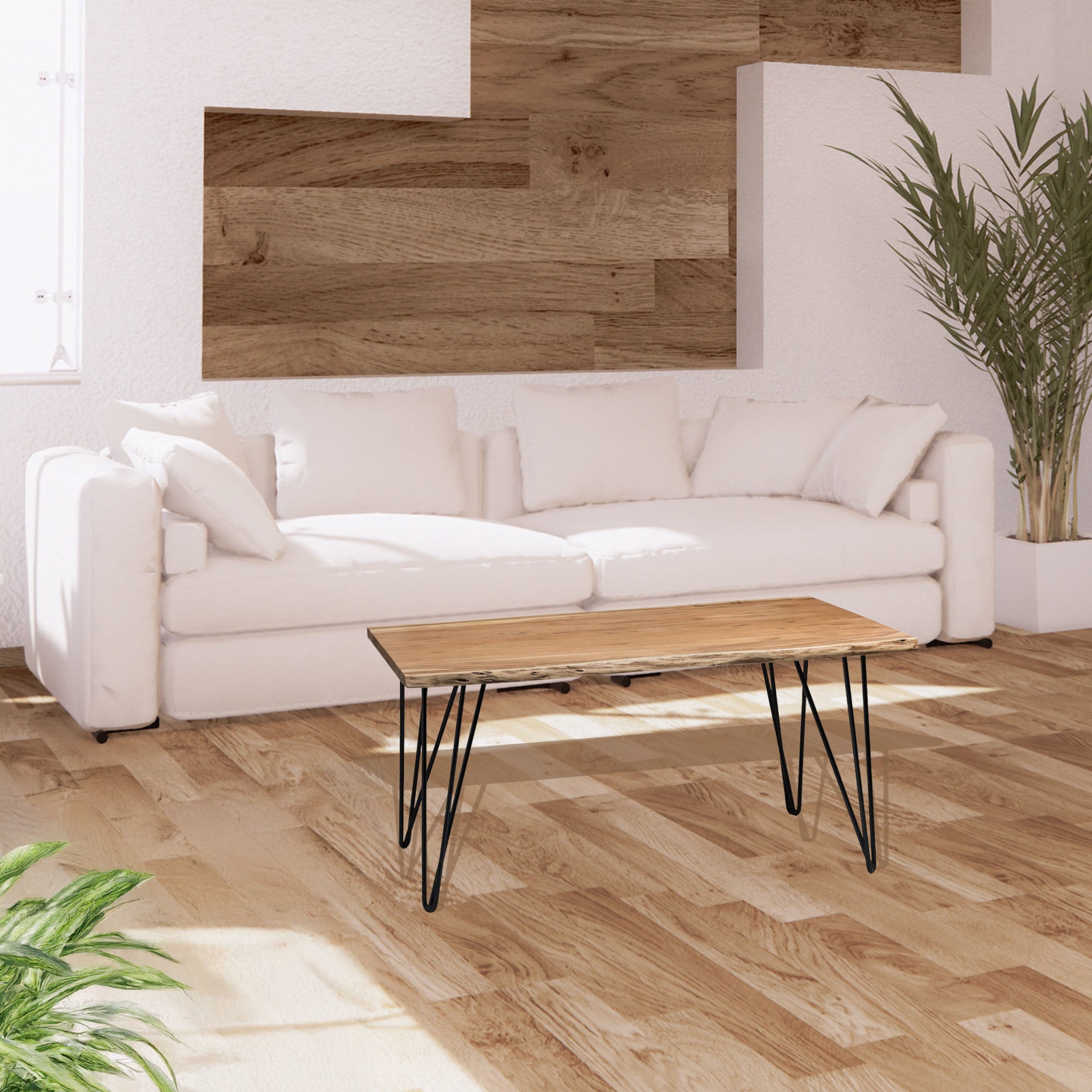 Hairpin Natural Live Edge Wood with Metal 42" Coffee Table, Natural
