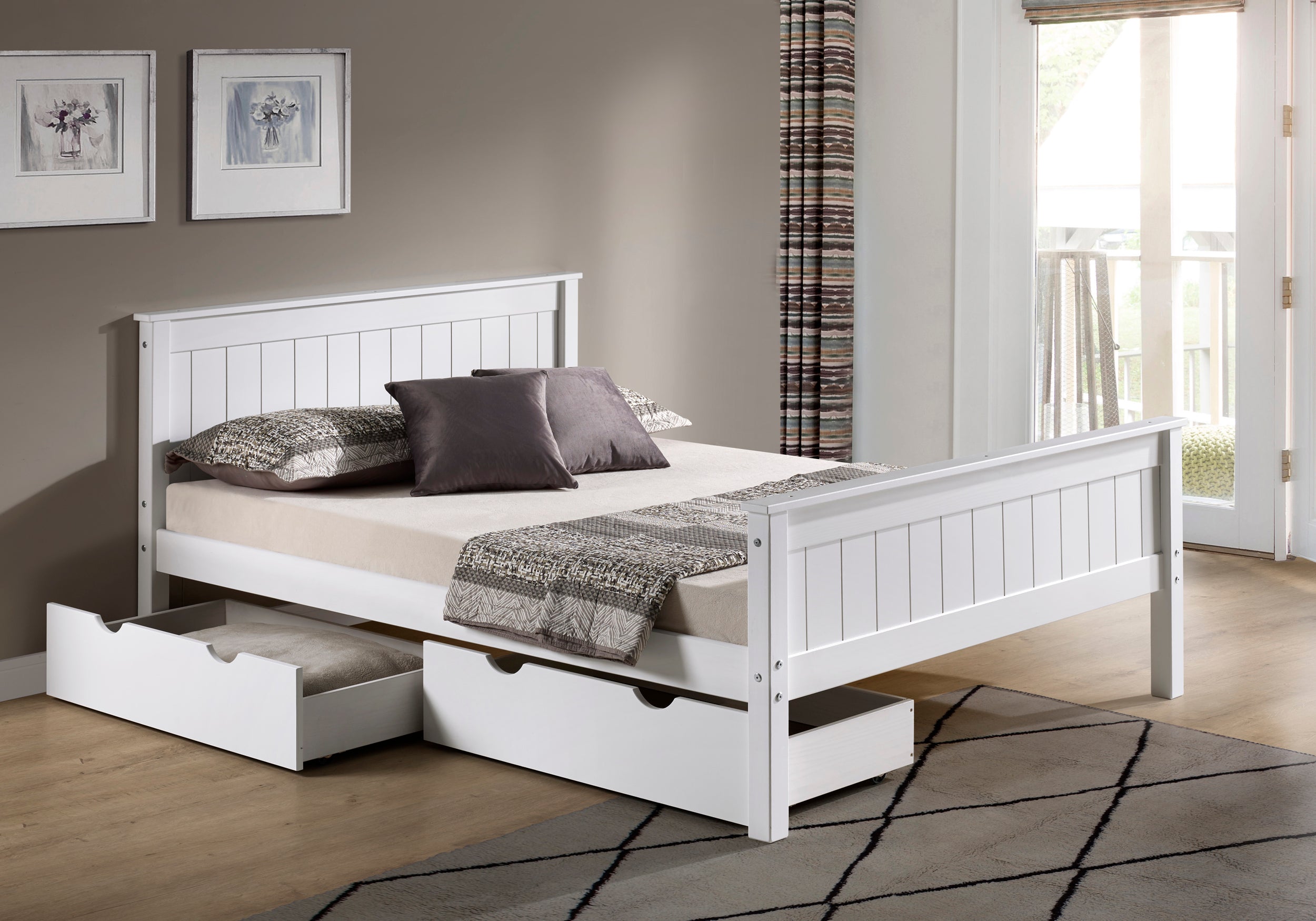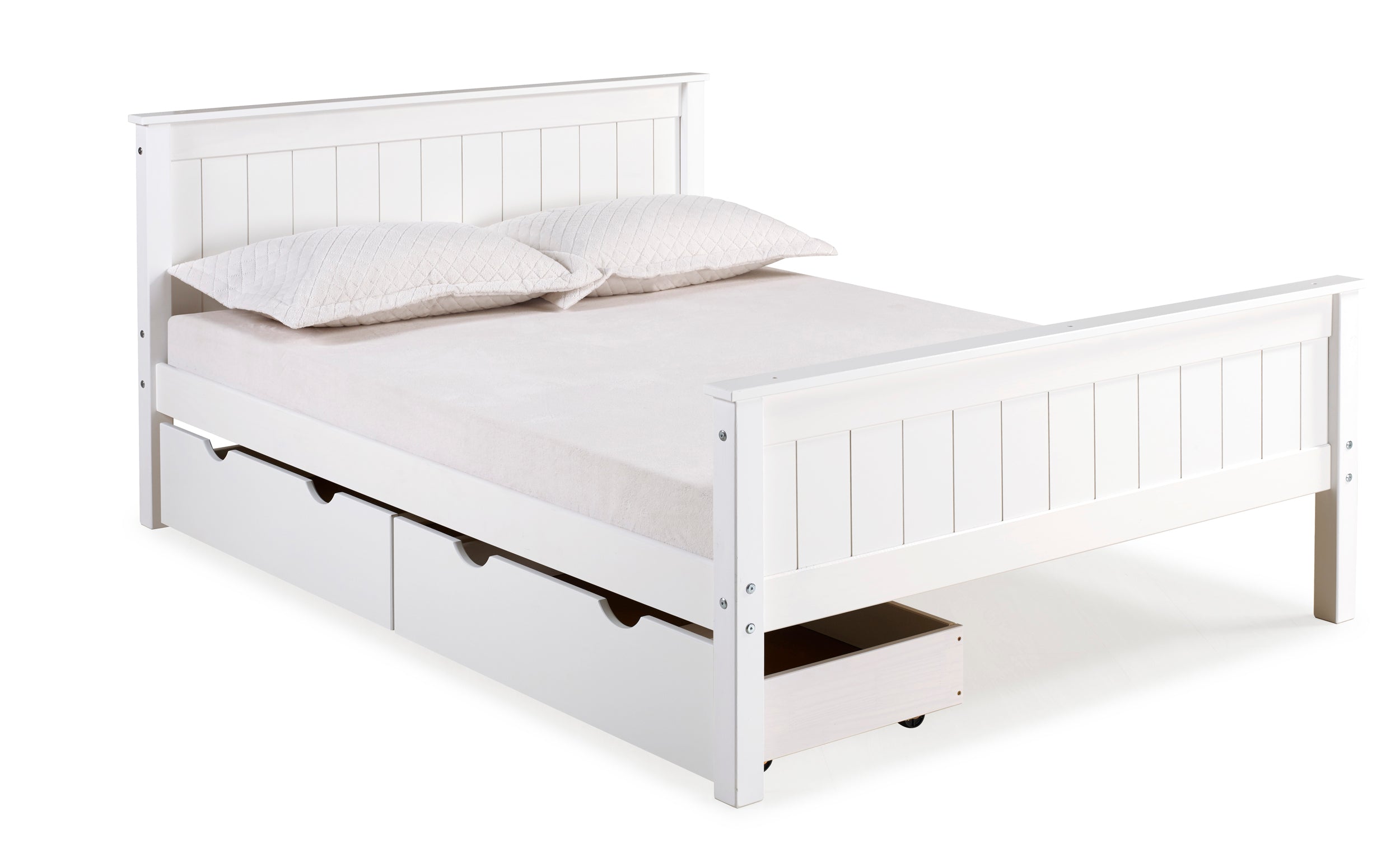 Harmony Full Wood Platform Bed with Storage Drawers, White