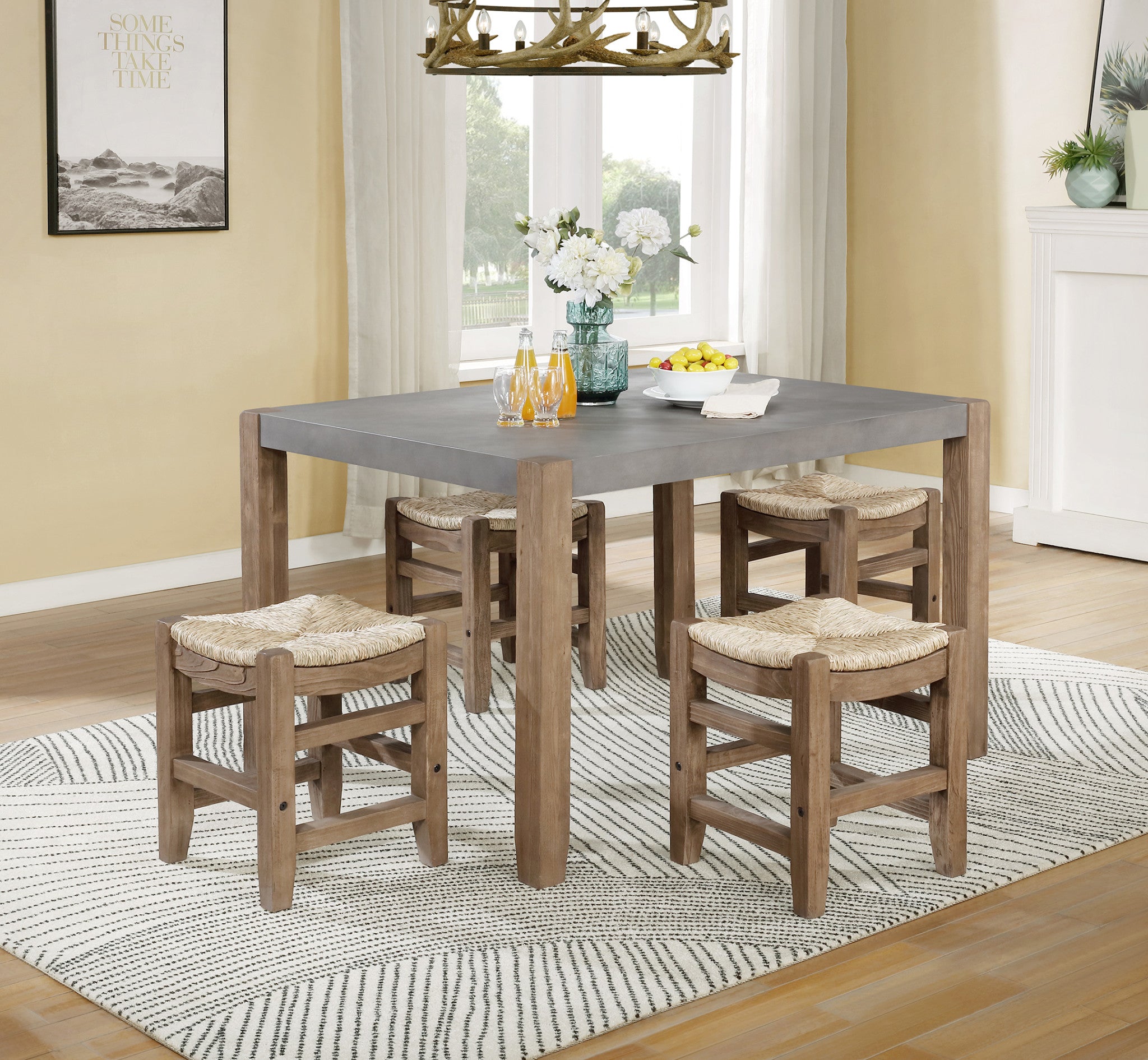 Clean lines and mixed materials are hallmarks of this rustic industrial furniture collection. Set of two stools provide extra seating in your dining area or living room. The rush seats with the square wood legs blend seamlessly. This collection allows you to affordably update your spaces to a very stylish look. Mix and match to achieve your desired look.