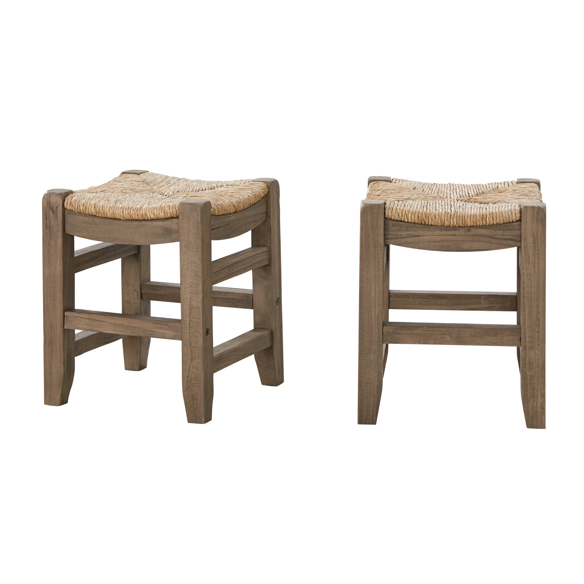 Newport Set of Two 18"H Wood Stools with Rush Seats