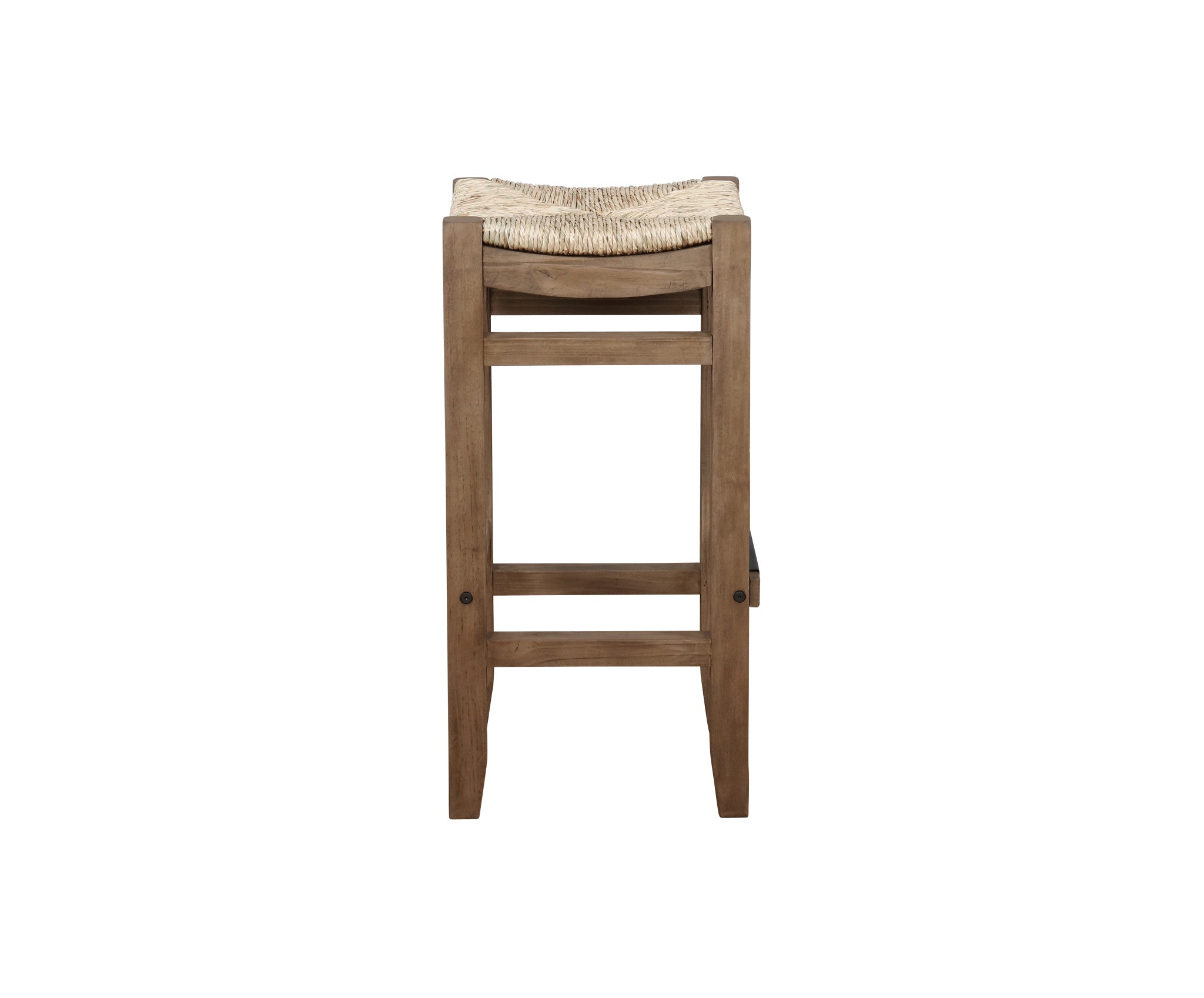 • Set includes two matching 30"H wood bar-height stools with rush seats