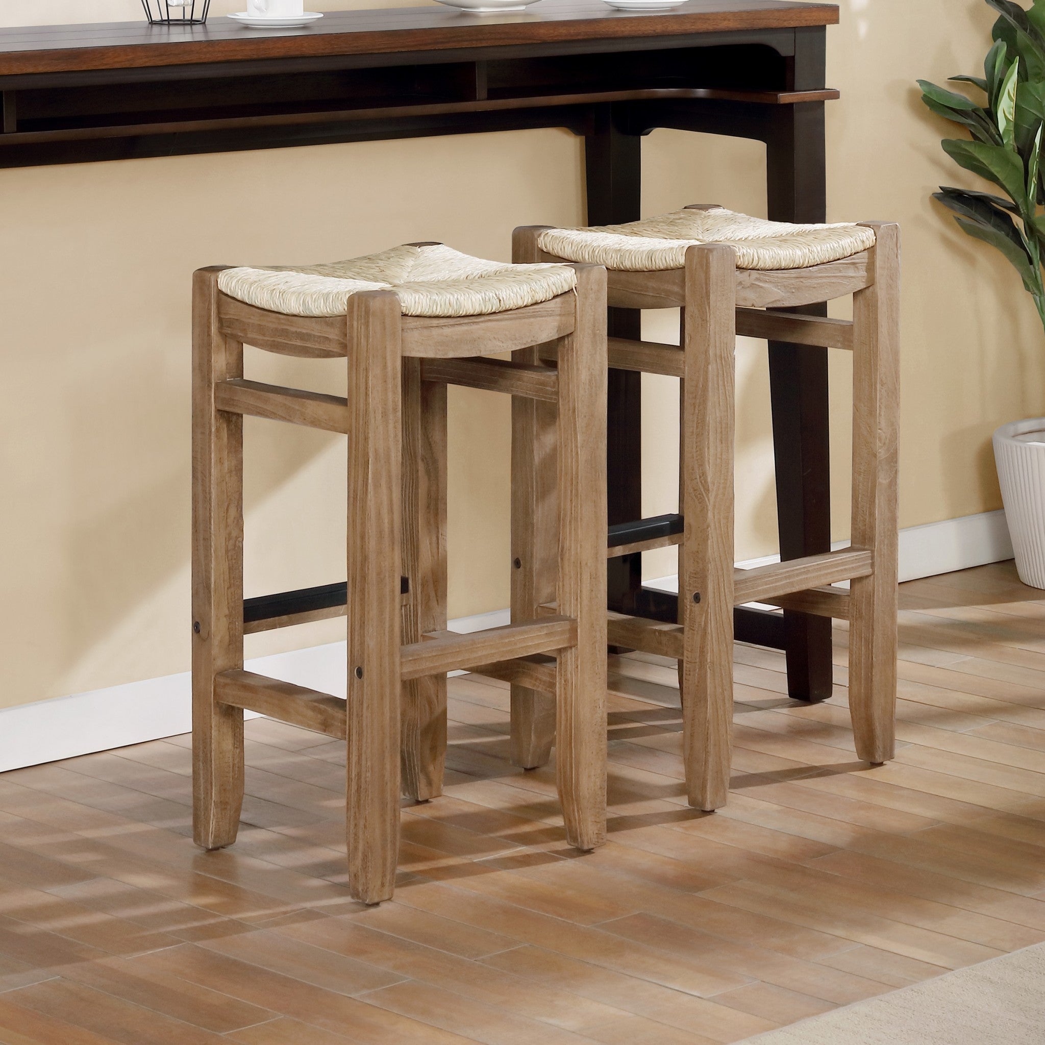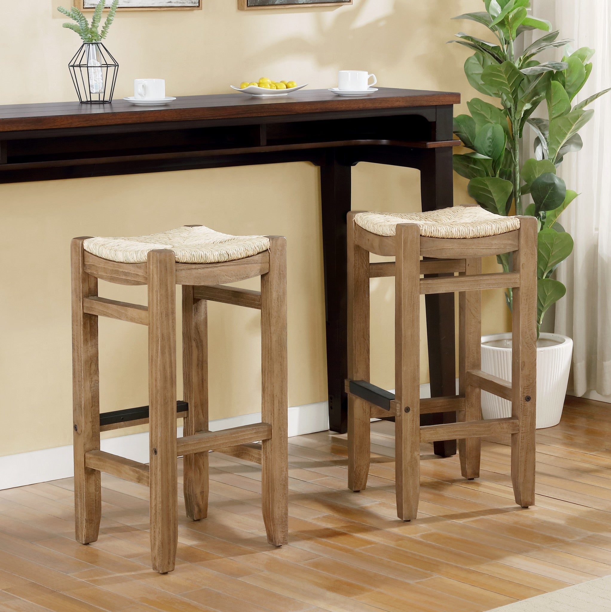 Set of 2 30" Davenport Wood Barstools with Rush Seats Light Amber - Alaterre Furniture
