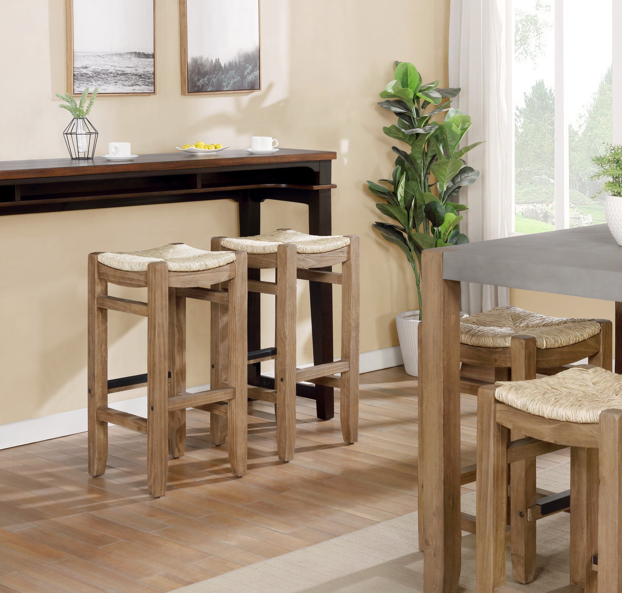 - [RUSTIC INDUSTRIAL STYLE] Alaterre Furniture's Newpory 30" H Wood Bar Stool features a rush seat with twisted natural seagrass and clean lines with mixed materials for a modern yet timeless look