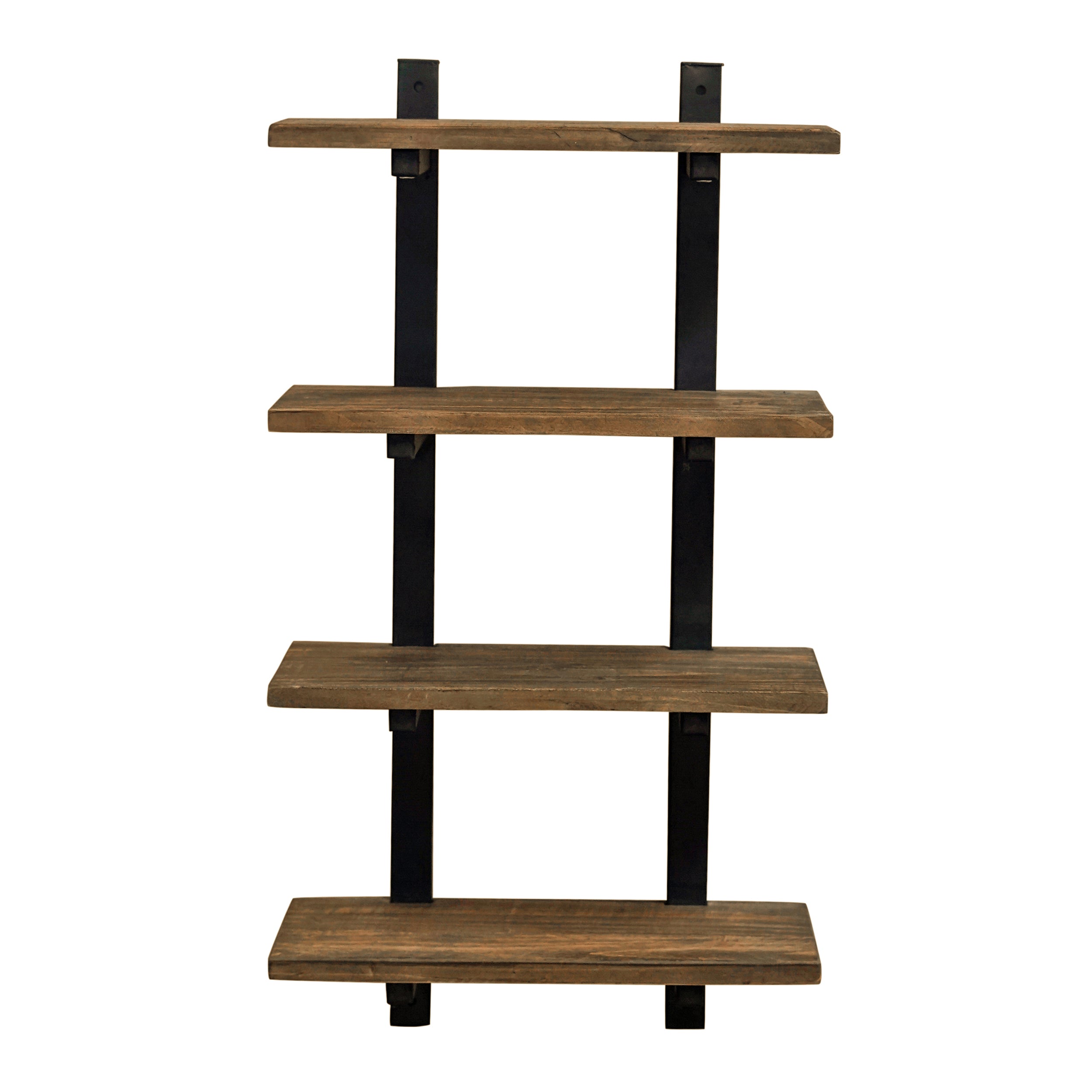 The Pomona collection features the exquisite workmanship of a solid wood top with metal legs that will last for years to come. Each piece is constructed of solid pine wood and finished to have the appearance of reclaimed wood. The reclaimed wood finish highlights natural wood variations such as cracks and knots which add to the piece's character. Any item in this collection will add to the rustic industrial style of any space. With its 20"Width and 36"Height this wall shelf gives you extra storage space in your bath. Bring your personal style into the bath with this modern farmhouse style bath shelf. Made from metal and wood.