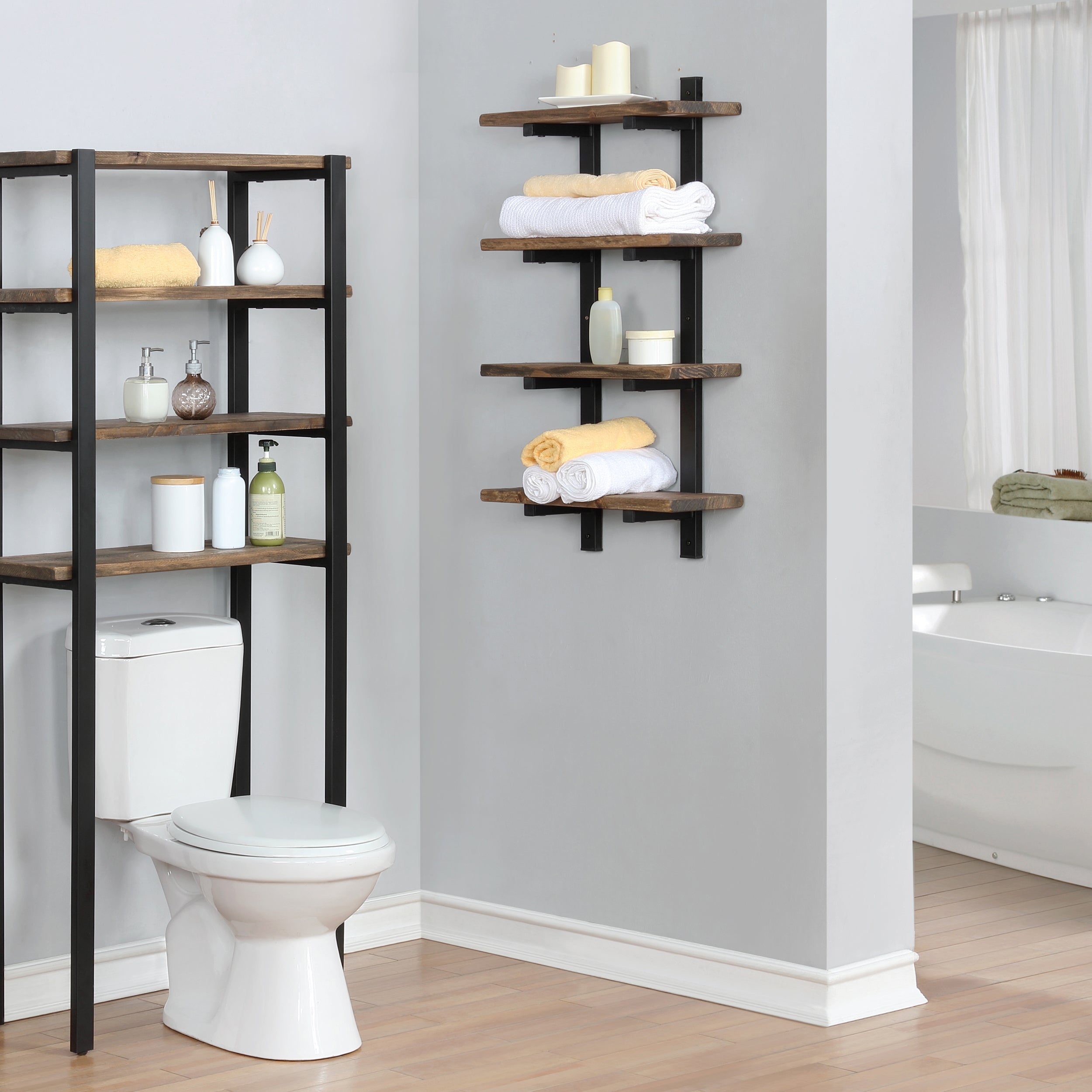 - SPACE-SAVING ELEGANCE: Maximize bathroom storage with four sturdy shelves; enhances decor with rustic charm and includes EZ Drywall Anchors for secure installation