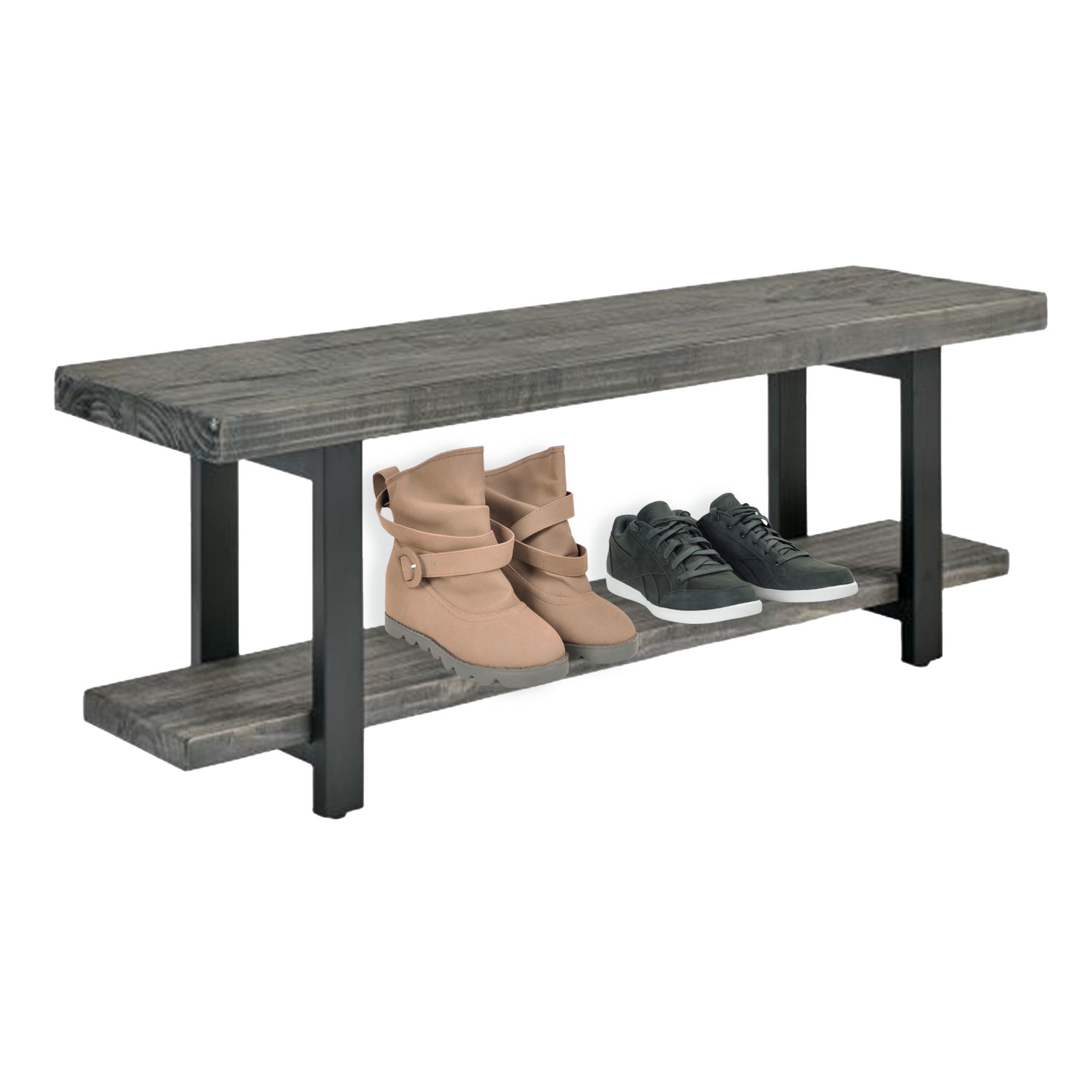 • EXCEPTIONAL CRAFTSMANSHIP – The Pomona 2-Tier Entryway Bench is built with solid pine wood and supported by a black metal frame, blending rustic charm with industrial strength. Designed to last for years, this sturdy shoe bench brings both durability and timeless style to your home.