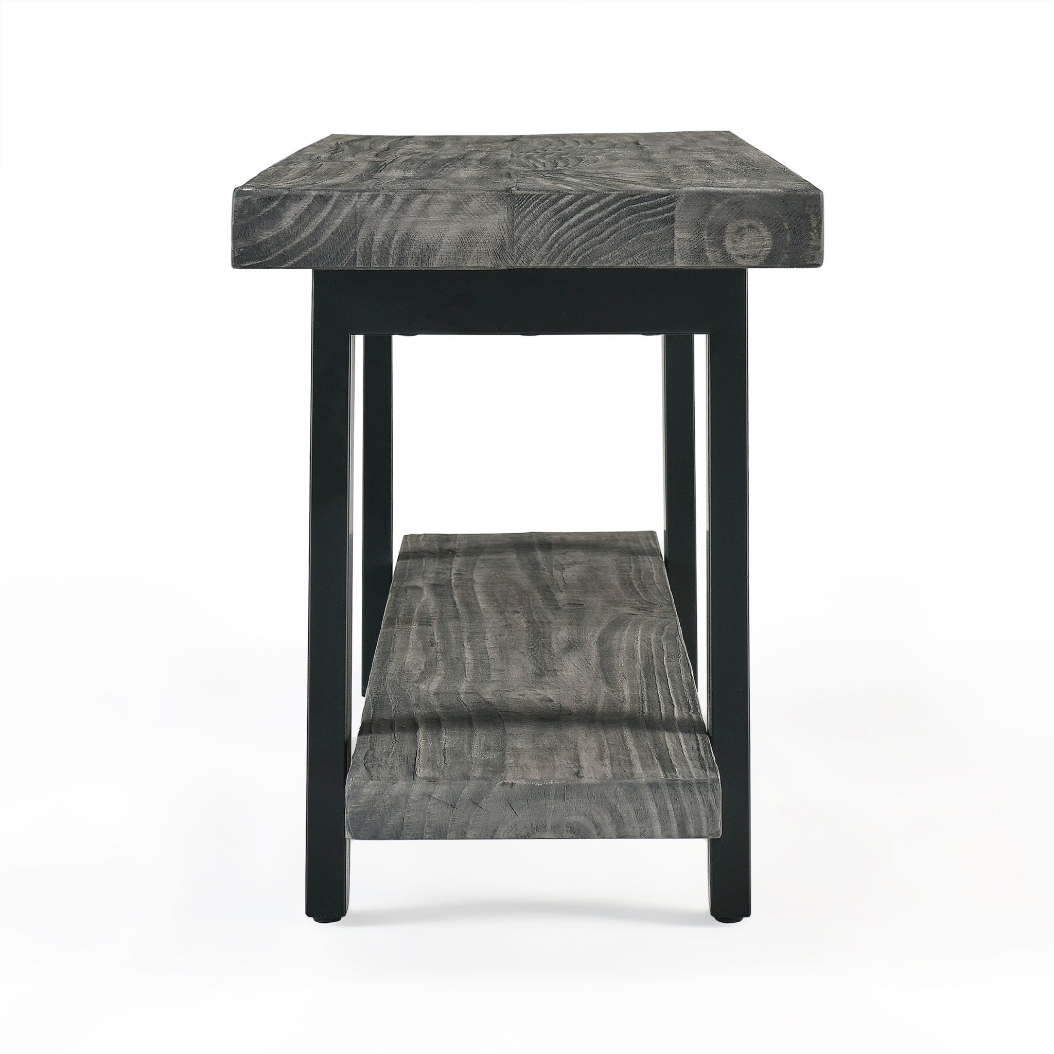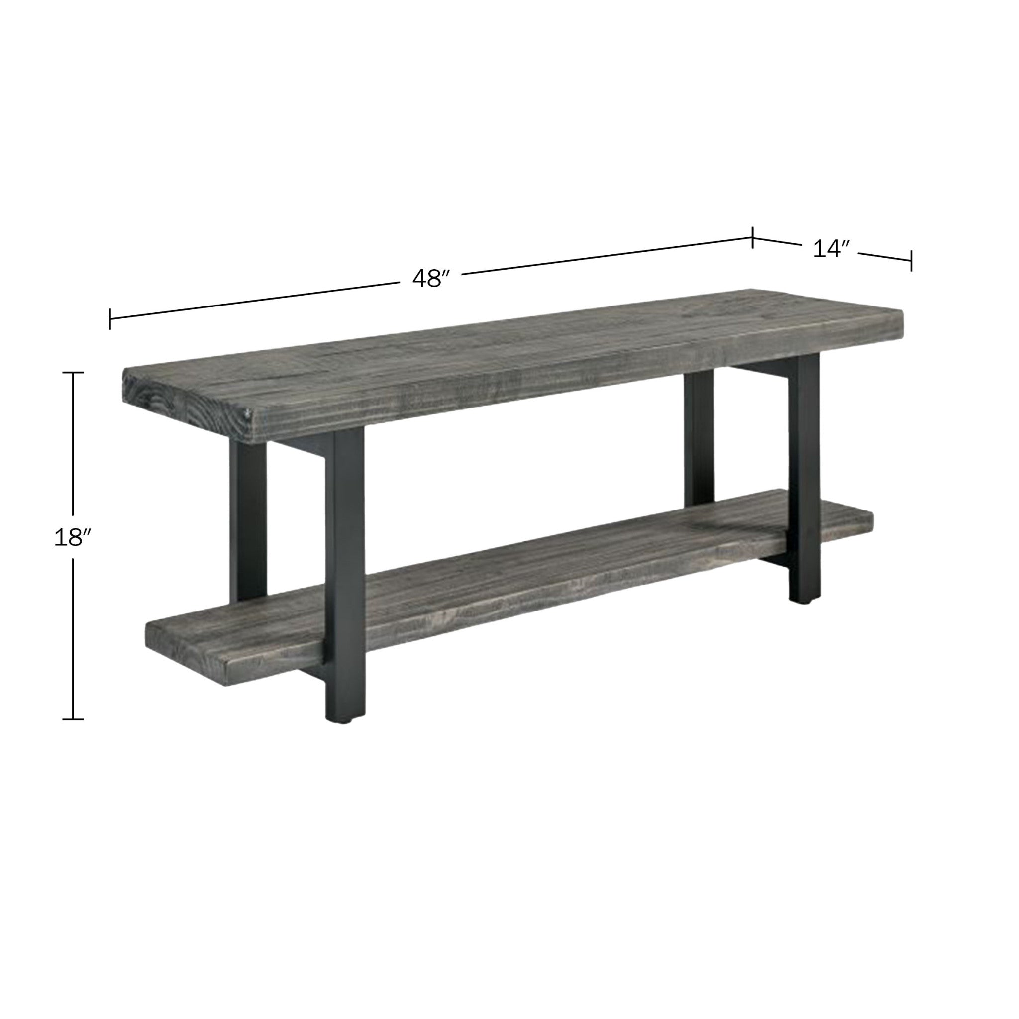 • PRODUCT DETAILS – Materials: Solid Pine Wood and Powder-coated Metal. Overall Dimensions: (L) 48" x (W) 14" x (H) 18", Shelf Clearance: (H) 11.75". Weight Capacity: 400lbs. Color: Slate Gray.