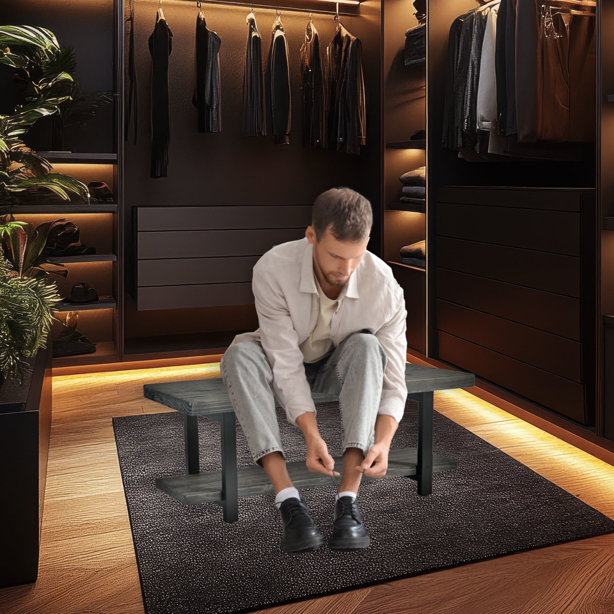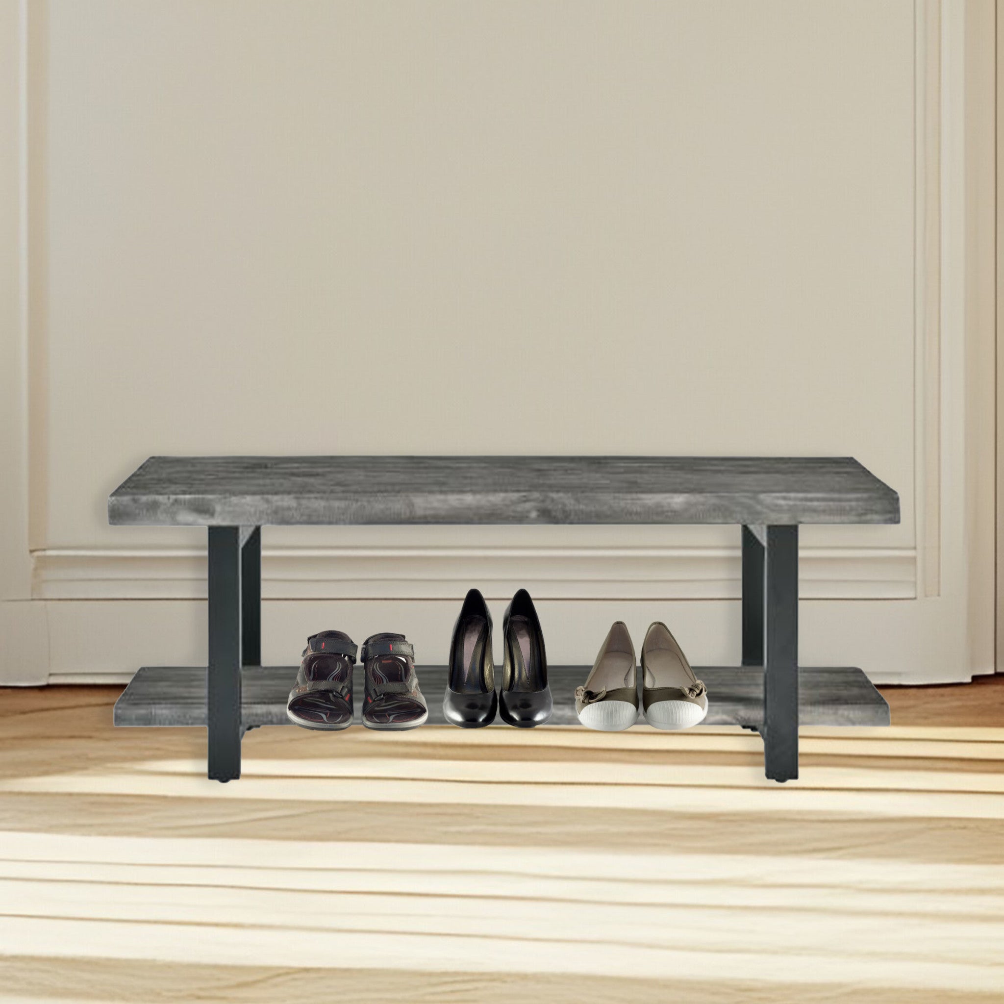 • RUSTIC INDUSTRIAL STYLE – Featuring a beautiful slate gray finish, this industrial entryway bench highlights the natural wood grain while adding warmth and elegance. A versatile piece that fits perfectly with modern farmhouse, rustic, or industrial home décor.