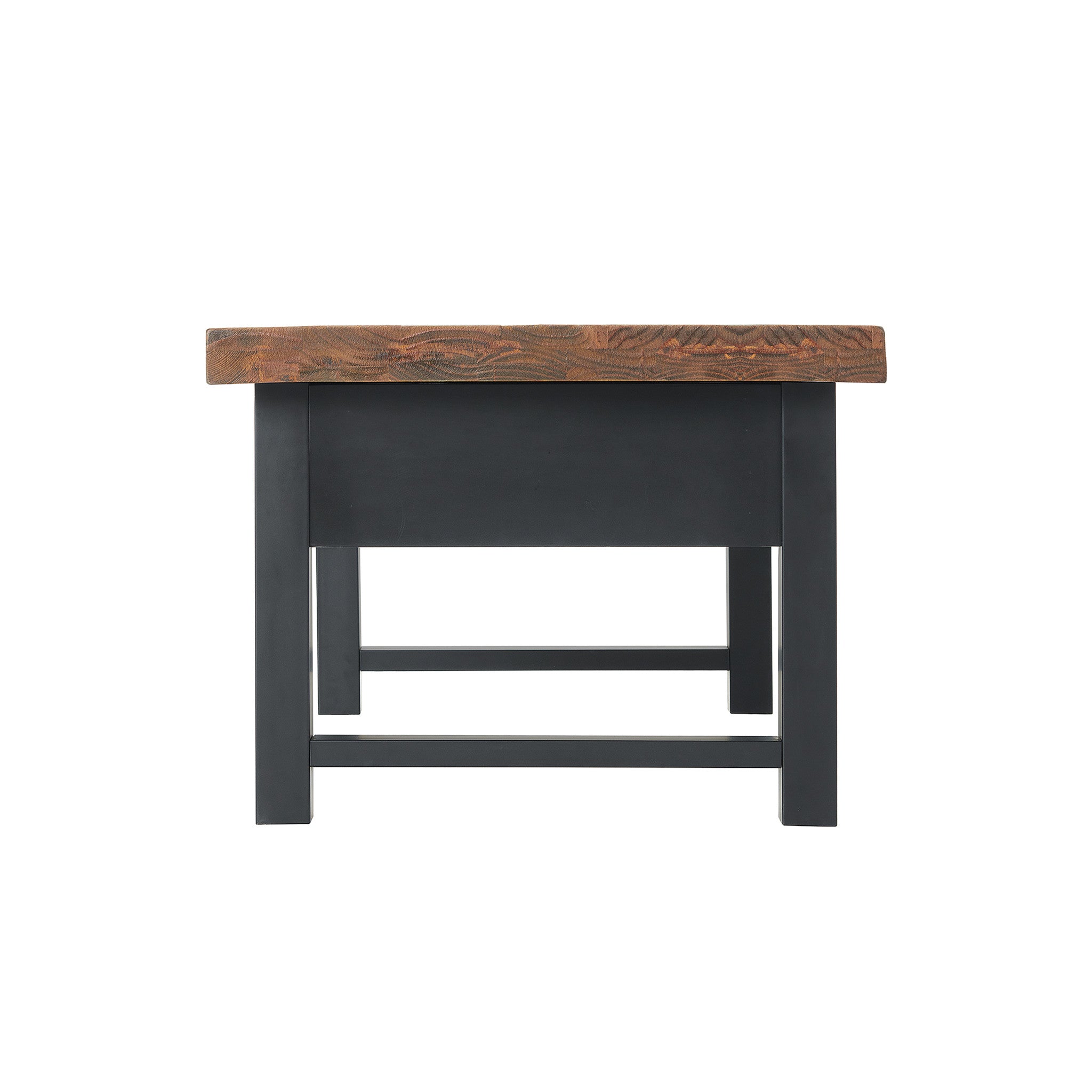The Pomona collection features the exquisite workmanship of a solid wood top with metal legs that will last for years to come. Each piece is constructed of solid pine wood and finished to have the appearance of reclaimed wood. The reclaimed wood finish highlights natural wood variations such as cracks and knots which add to the piece's character. This set of three is sure to enhance your living room style; one lift top coffee table and two end tables complete the look. Any item in this collection will add to the rustic industrial style of any space.
