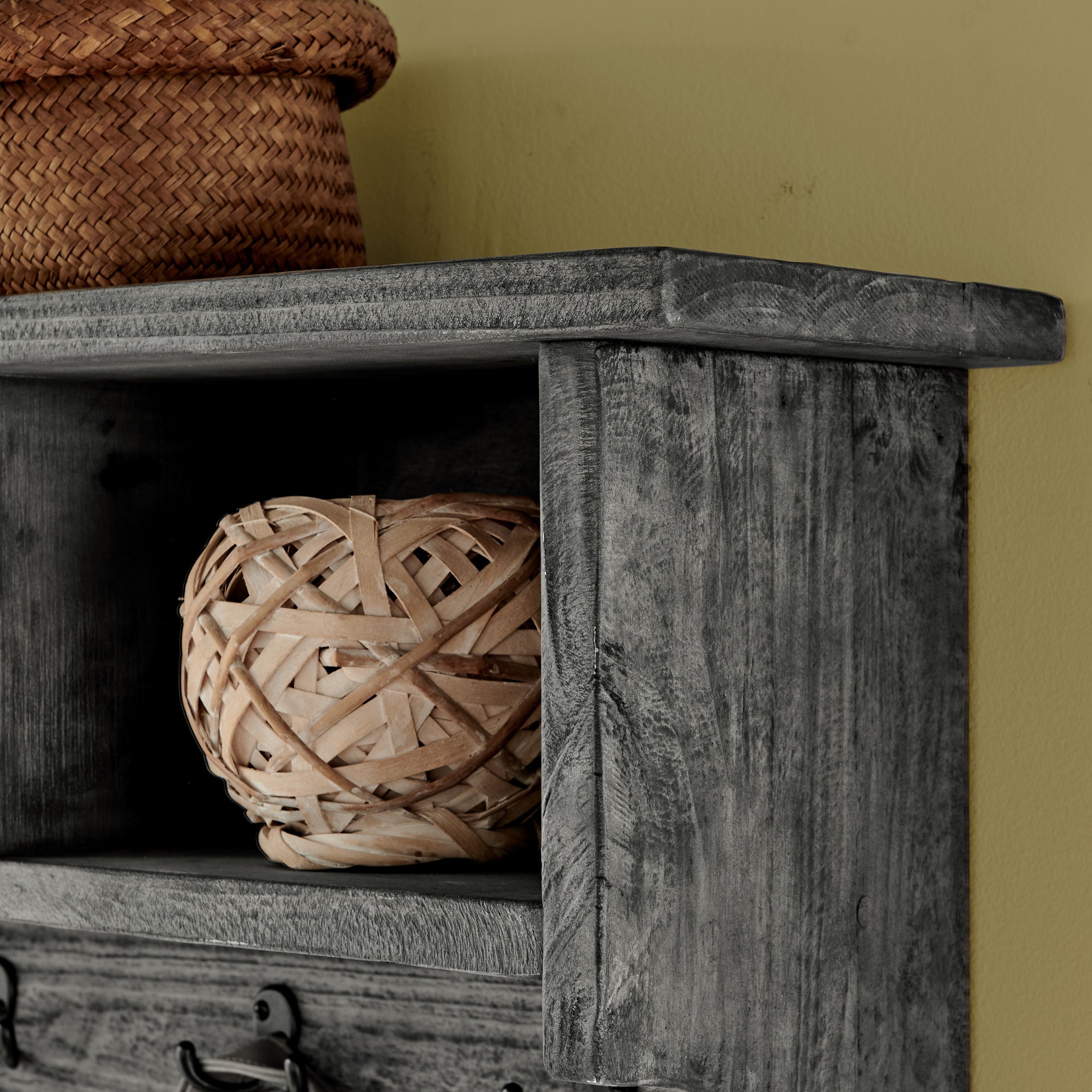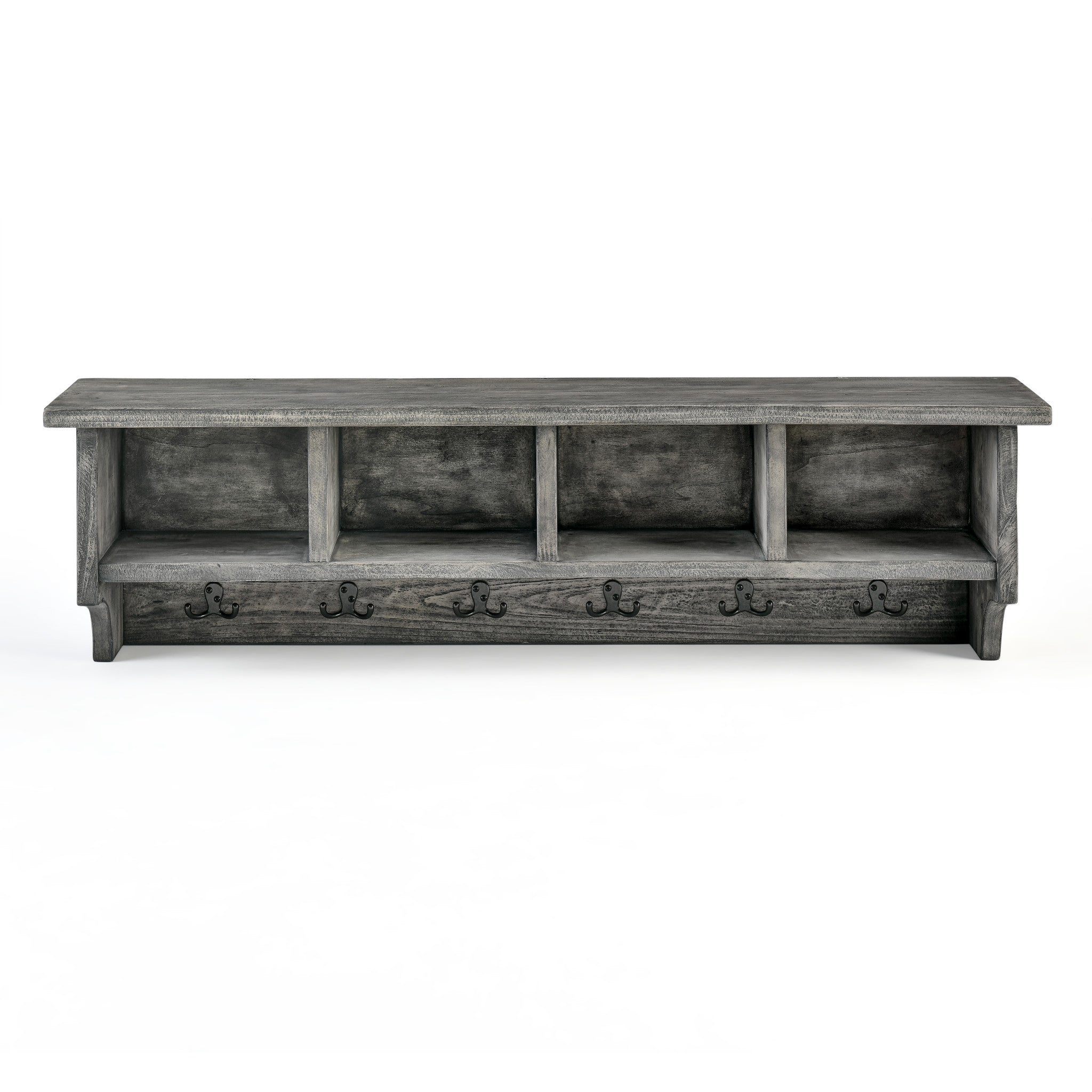 - [STORAGE AND SEATING] Bench with four cubbies for storage and seating. Ideal for entryways or mudrooms, providing a functional spot to store shoes, hats, and gloves while adding to the room's organization