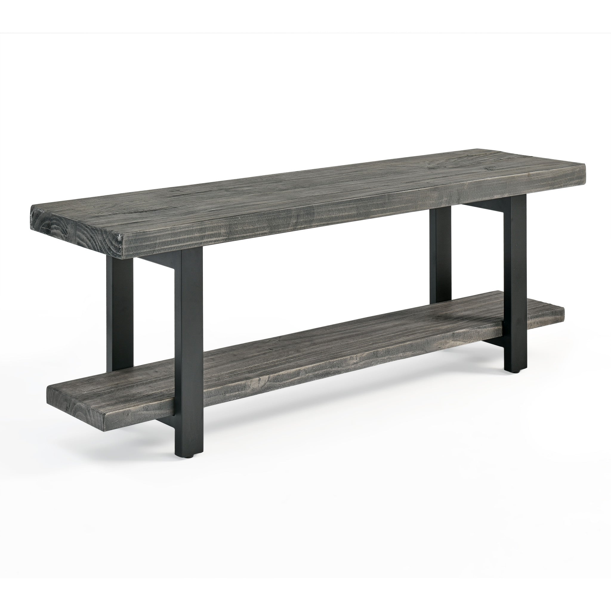 The Pomona collection features the exquisite workmanship of a solid wood top with metal legs that will last for years to come. Each piece is constructed of solid pine wood and finished to have the appearance of reclaimed wood. The reclaimed wood finish highlights natural wood variations such as cracks and knots which add to the piece's character. Any item in this collection will add to the rustic industrial style of any space. 48" Coat Hook has a rustic, modern style. Extremely versatile for your entryway, hall, laundry or guest room. The cubbies allow you to store hats, gloves, etc. and the hooks are strong enough for jackets and packs. Pomona Bench is versatile and perfect for your entryway, dining, or living room.