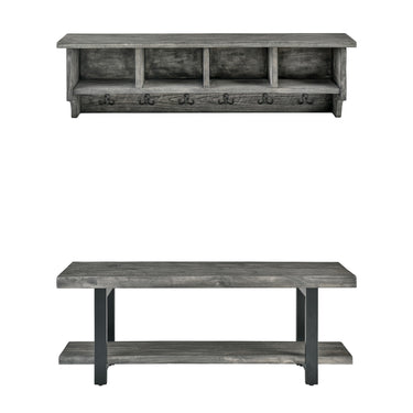 Pomona 48" Metal and Wood Wall Coat Hook with Bench, Slate Gray