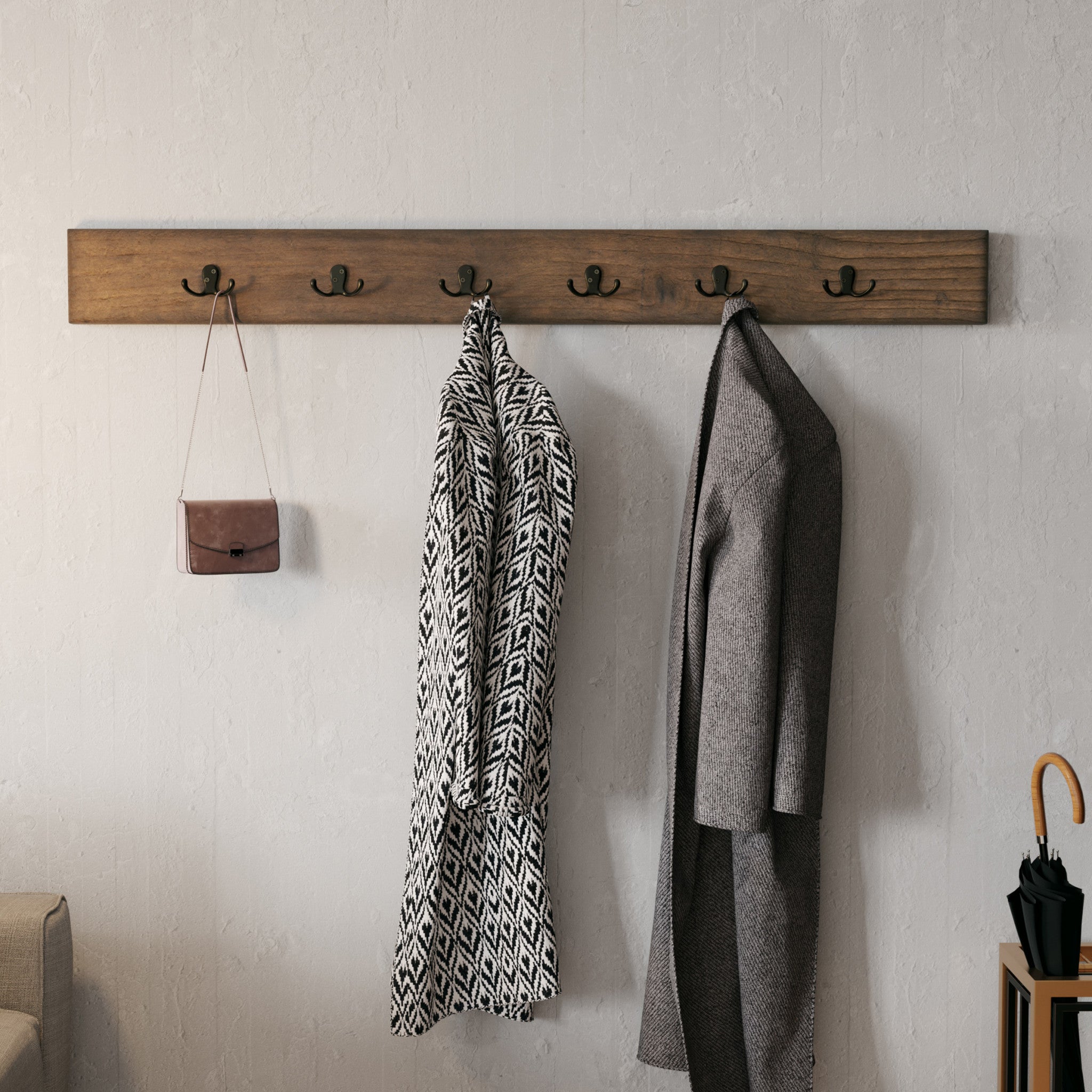 • HIGH-CAPACITY 6-HOOK RACK – Features six robust hooks – ideal for multiple coats, bags, hats, and accessories – perfect for families, apartments, or shared spaces.