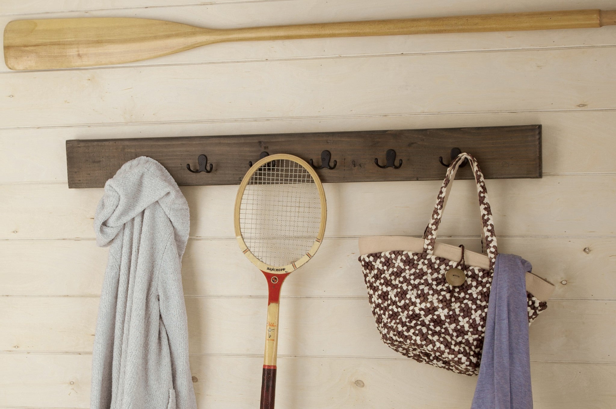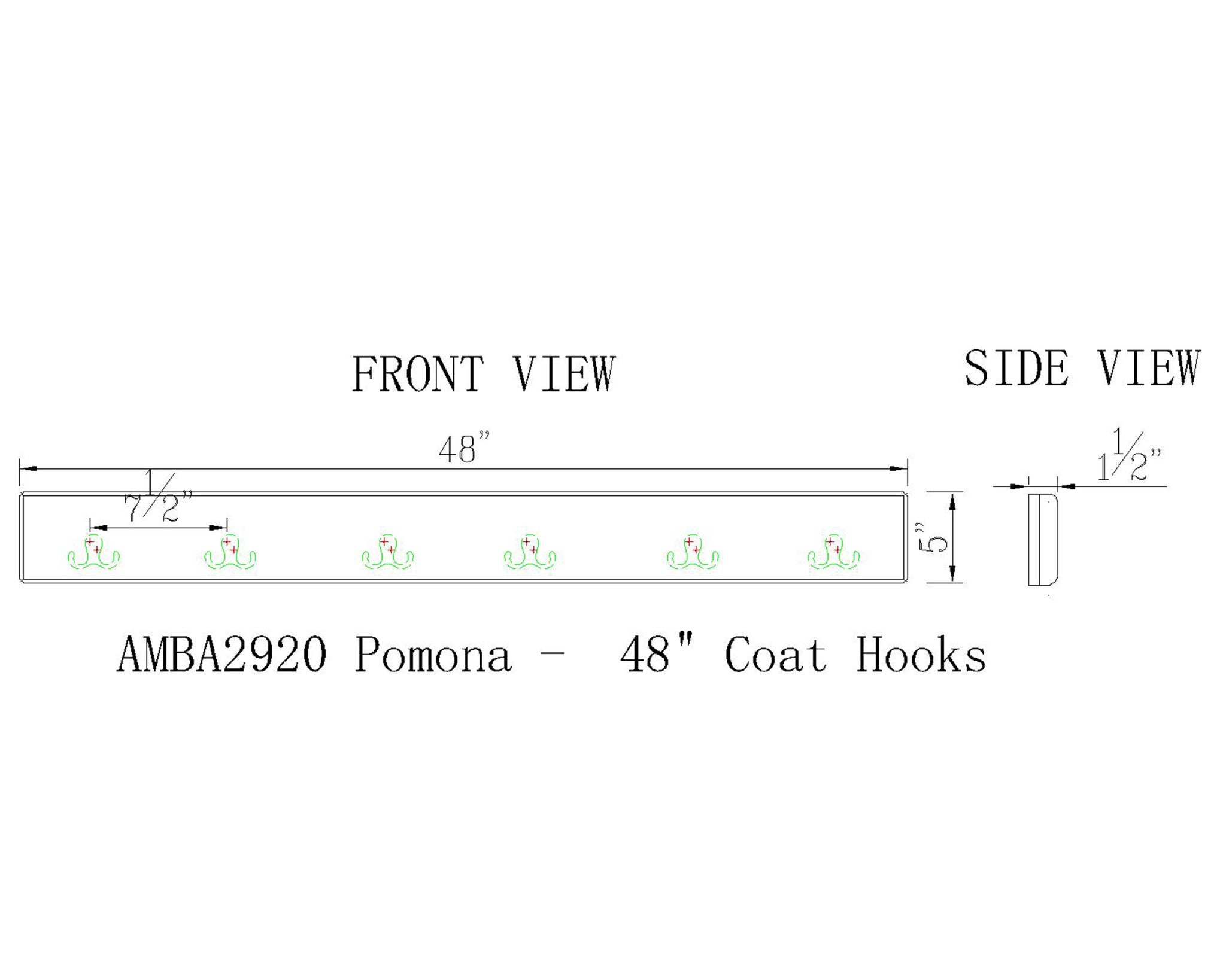 - PRODUCT DETAILS – Materials: Solid Pine Wood and Metal. Overall Dimension: (L) 48" x (W) 1.5" x (H) 5", Coat Hook clearance: (L) 7.5". Weight Capacity: 75lbs. Includes 6 coat hooks and French cleat. Color: Natural.