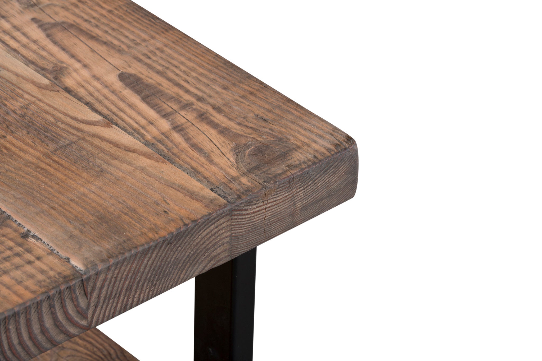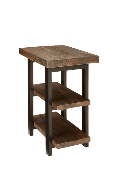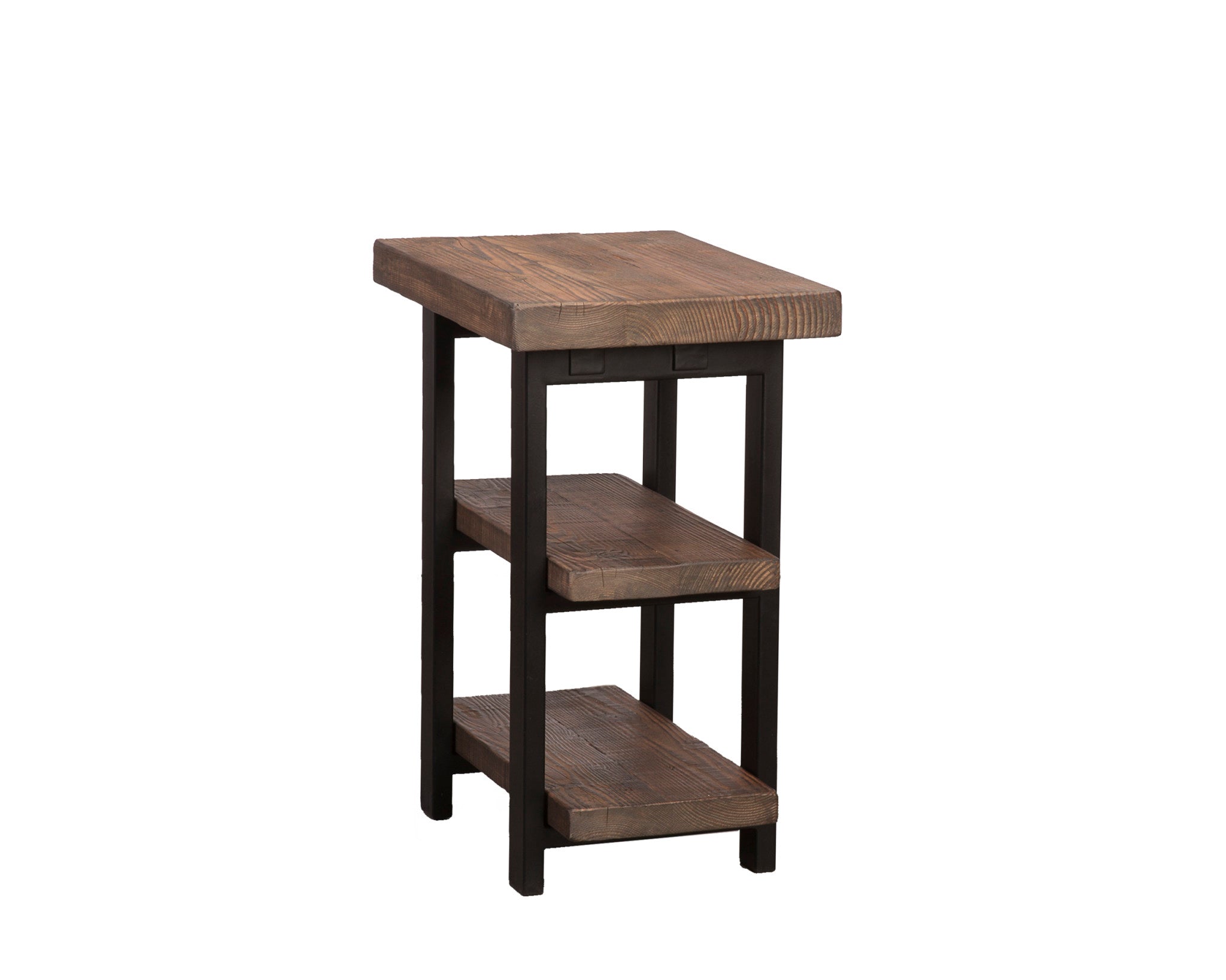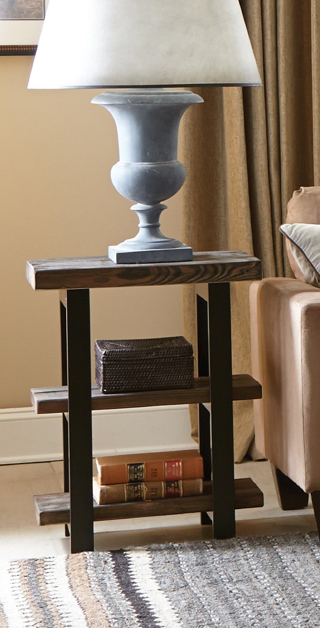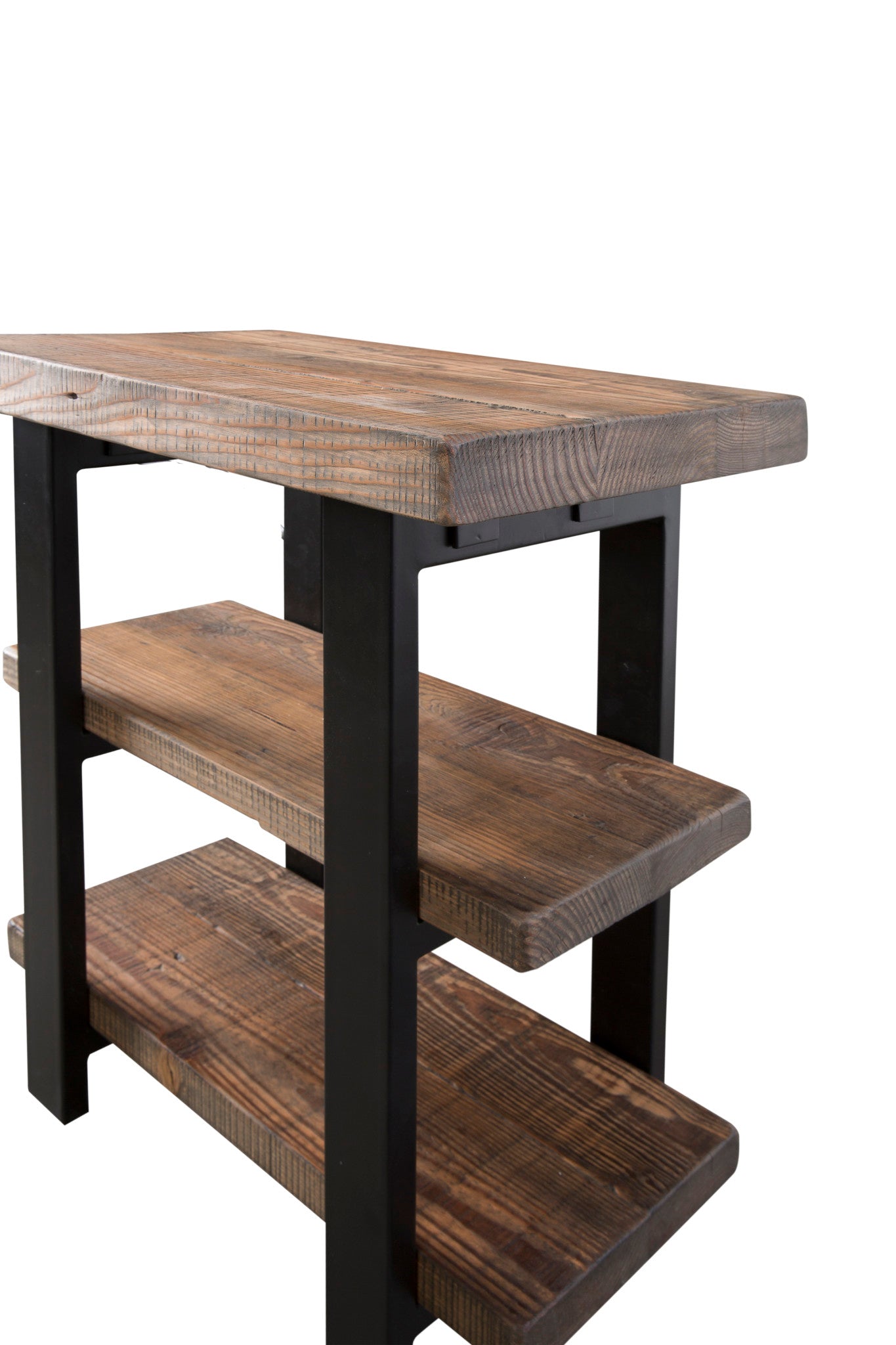 The Pomona collection features the exquisite workmanship of a solid wood top with metal legs that will last for years to come. Each piece is constructed of solid pine wood and finished to have the appearance of reclaimed wood. The reclaimed wood finish highlights natural wood variations such as cracks and knots which add to the piece's character. Any item in this collection will add to the rustic industrial style of any space. Pomona 2-Shelf End Table will add warmth to any décor. The rustic natural finish and design provide a stylish element to your room. Add your favorite lamp, books, magazines, or knick knack to complete your decorating style.