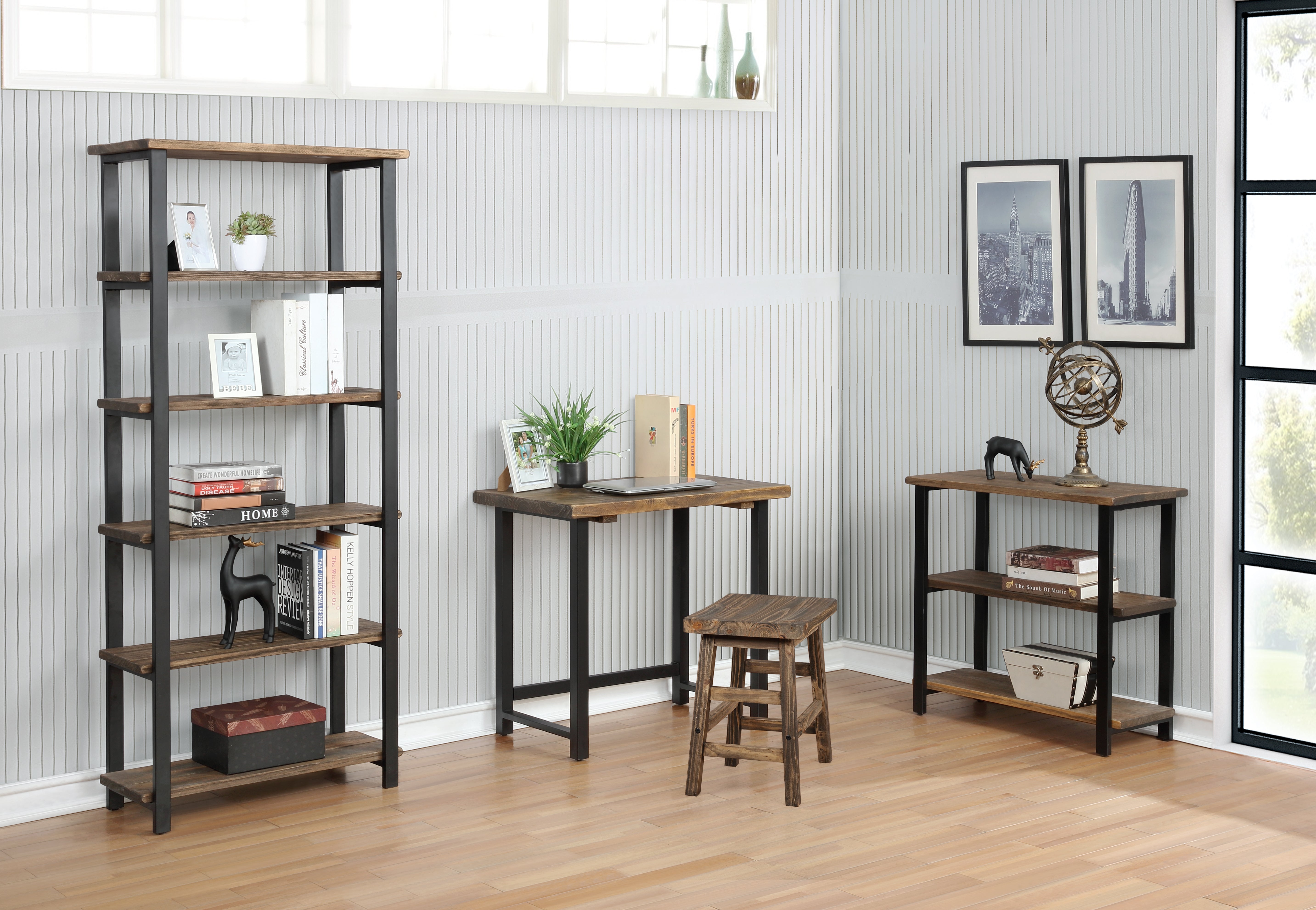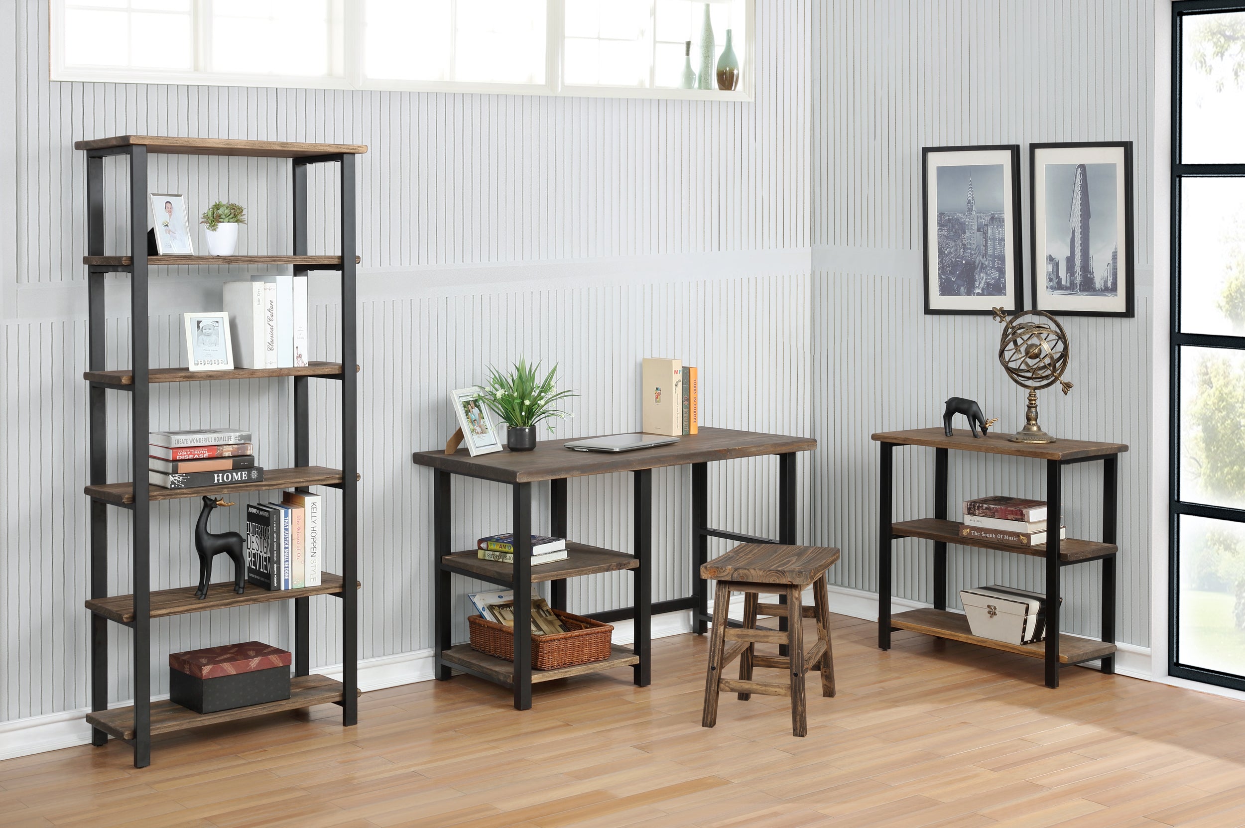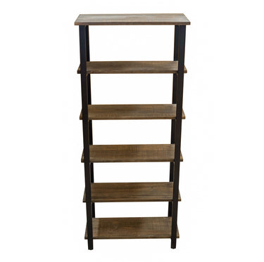 Pomona 70"H 5-Shelf Metal and Solid Wood Bookcase